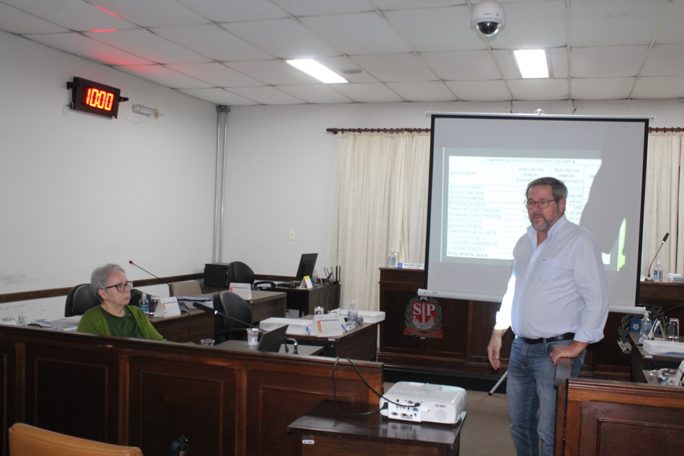 Durante a apresentação, foram expostos os principais indicadores financeiros do município, incluindo receitas arrecadadas, despesas executadas, resultado primário, dívida consolidada e aplicação em áreas essenciais como saúde e educação.