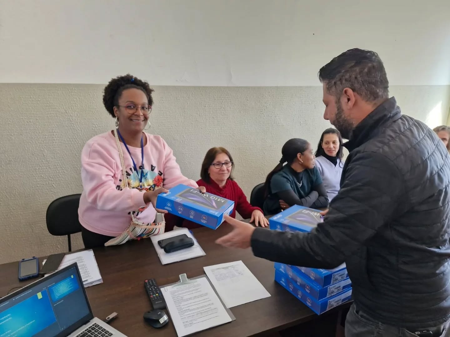 A Prefeitura Municipal de Santa Rosa de Viterbo, por meio do Departamento Municipal de Saúde, realizou a entrega oficial de tablets aos Agentes Comunitários de Saúde (ACS) que integram as equipes da Estratégia de Saúde da Família (ESF). A iniciativa marca um importante passo na modernização dos serviços de atenção básica e no fortalecimento do vínculo entre os profissionais de saúde e a comunidade.