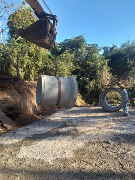 As imagens mostram o progresso da obra, que está sendo realizada com estrutura reforçada, garantindo mais segurança, durabilidade e melhor fluxo para os moradores da localidade e produtores rurais que dependem diariamente dessa via.
