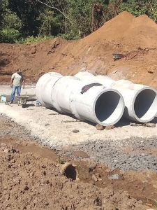 Após ter sido completamente destruída pelas fortes chuvas do final do ano passado, a ponte sobre o Ribeirão Capão do Alto, na Estrada Municipal Frederico Rose, está passando por uma reconstrução total.