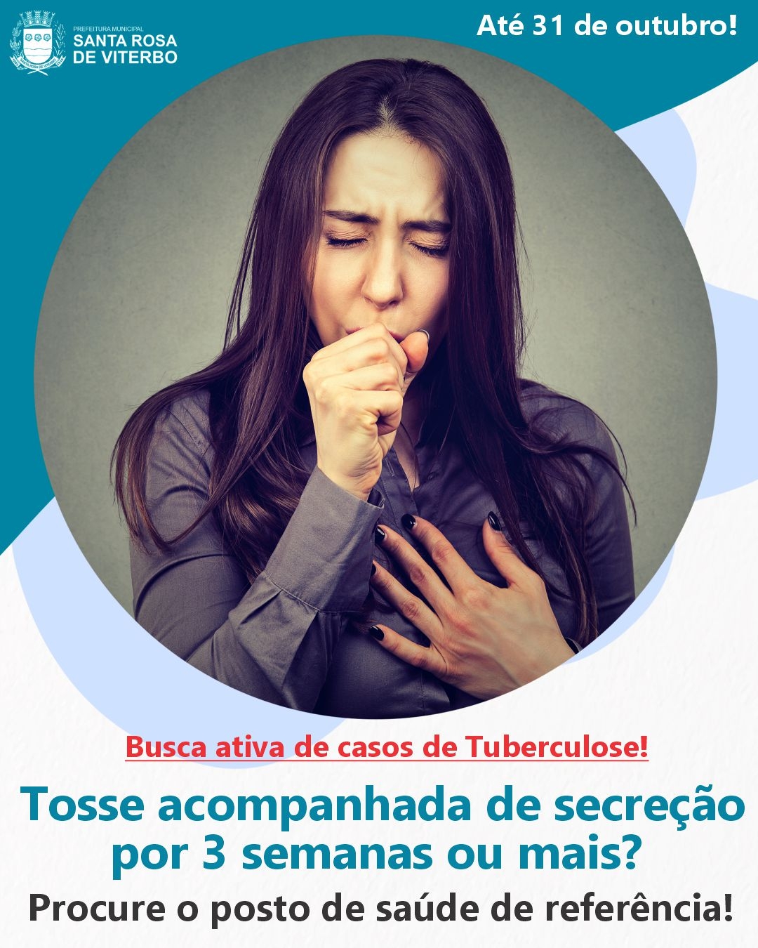 O Departamento Municipal de Saúde realiza, de 15 de setembro a 31 de outubro, a campanha de busca ativa de casos de tuberculose. Pessoas com tosse acompanhada de secreção por três semanas ou mais devem procurar o posto de saúde de referência para realizar o exame. A tuberculose tem cura e o tratamento é oferecido gratuitamente pelo SUS.
