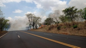 Rodovia Conde Francisco Matarazzo está interditada nos dois sentidos devido a queimada