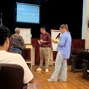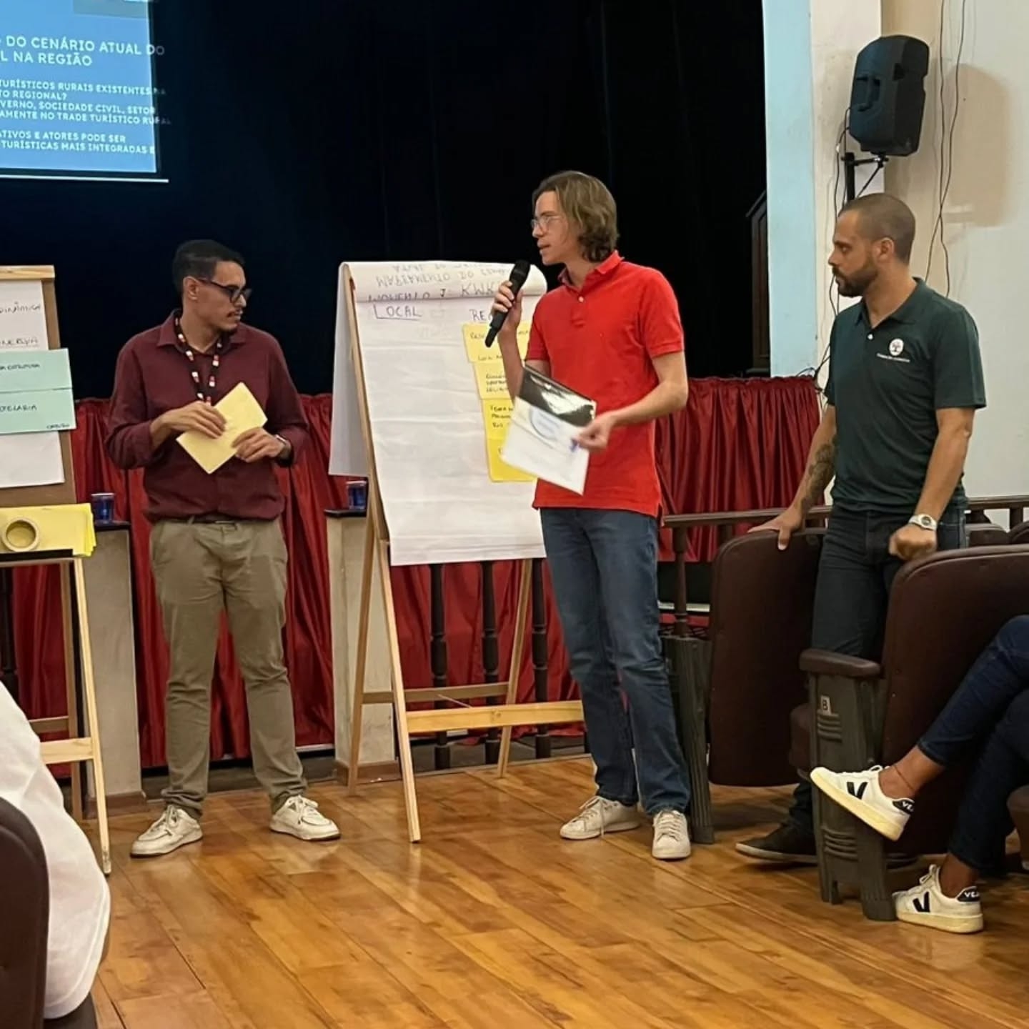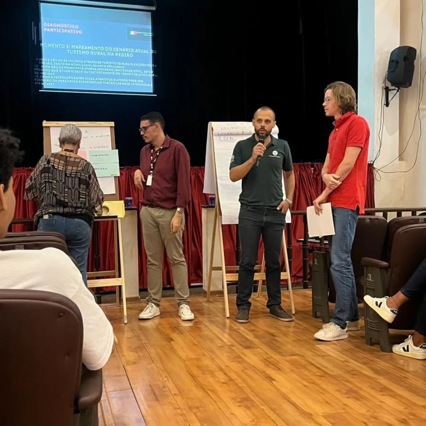 Participaram pela prefeitura a diretora de Meio Ambiente, Camila Fedel, e os servidores Kauê e Ana Paula, do Departamento de Engenharia e Obras. A programação contou com quatro painéis temáticos, abordando temas estratégicos para a qualificação da gestão urbana.