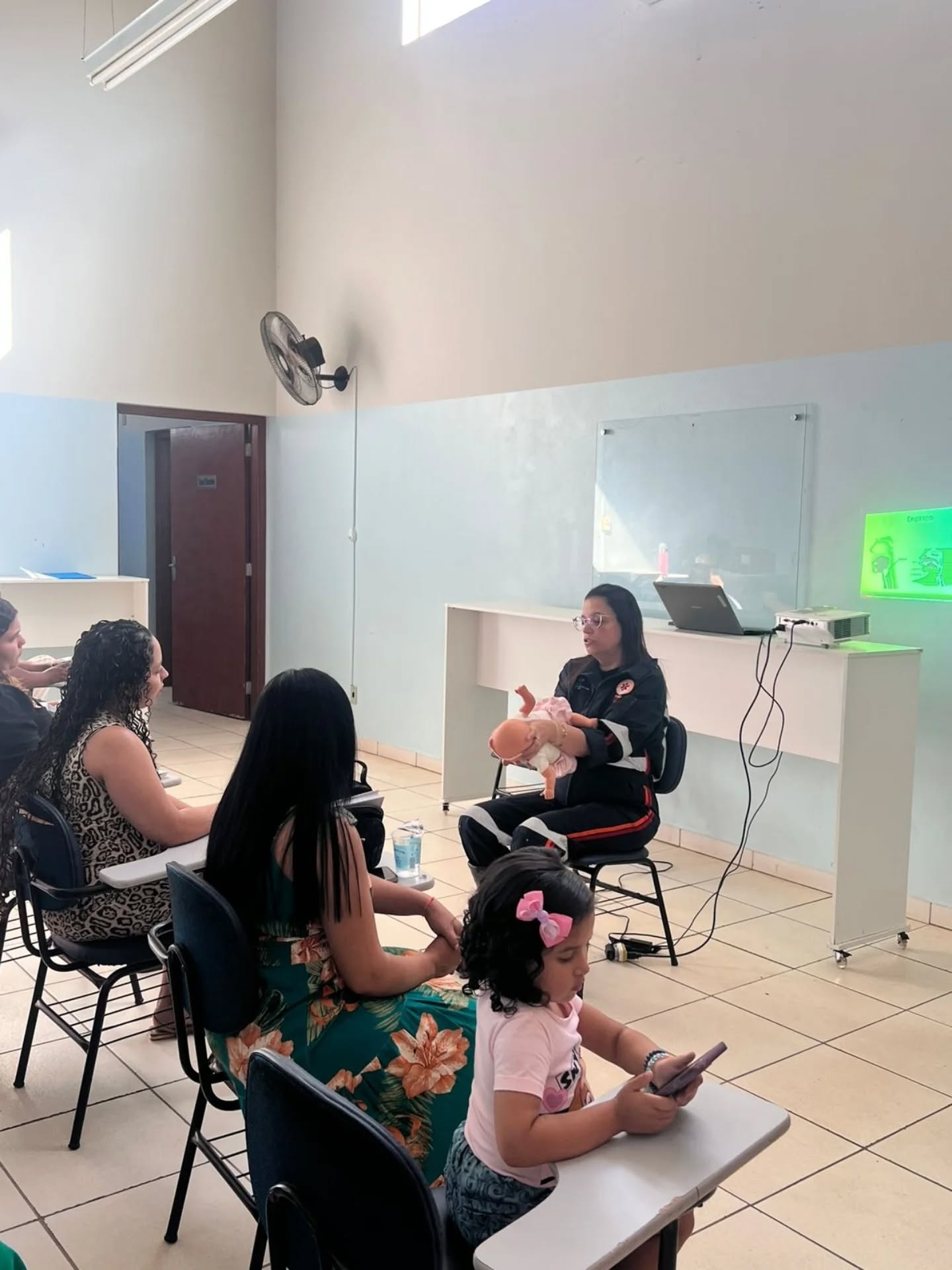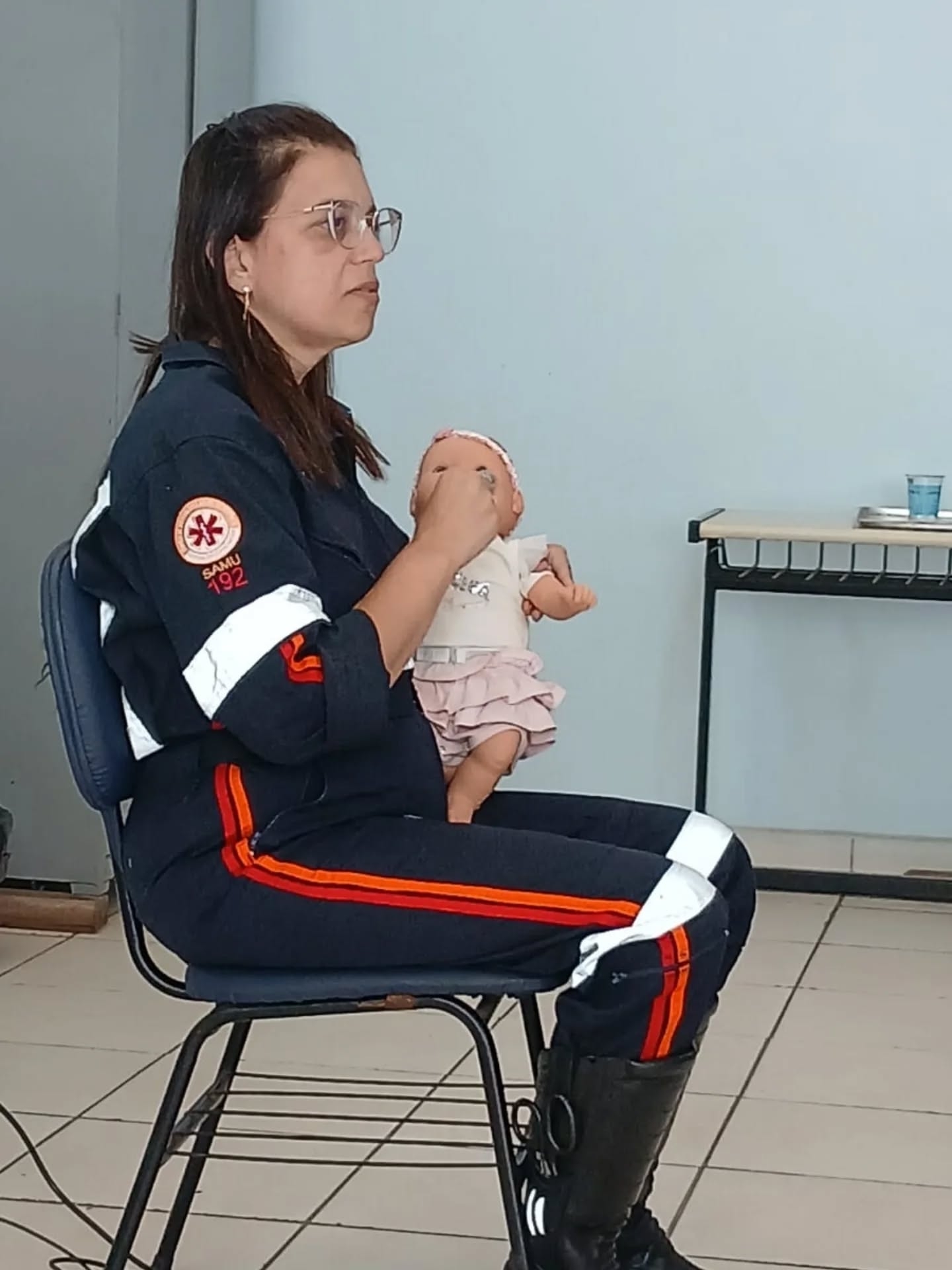 Engasgo em Bebês (prática), conduzida pela enfermeira Michele Costa, do SAMU.