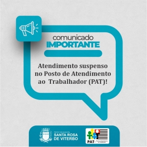 Informamos que o Posto de Atendimento ao Trabalhador (PAT) está temporariamente sem atendimento ao público, devido à interrupção na conexão de internet e telefone.