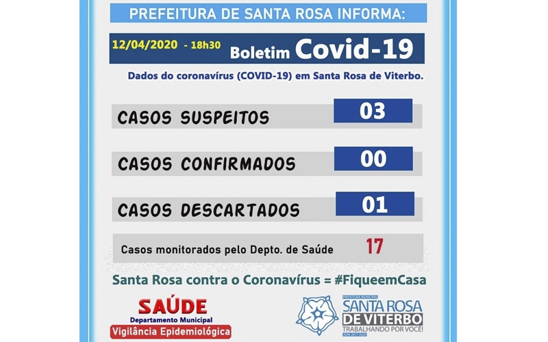 Fique por dentro da situação dos números do Coronavírus em Santa Rosa de Viterbo.