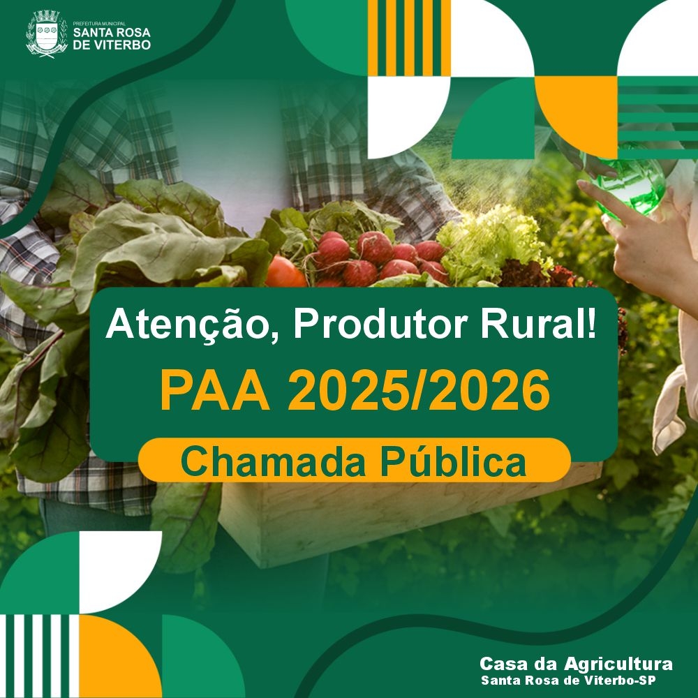 Será realizada uma reunião com os produtores interessados em participar do PAA no dia 27 de outubro de 2025, às 18h30, no Centro Cultural, situado à Rua 7 de Setembro, nº 1000.