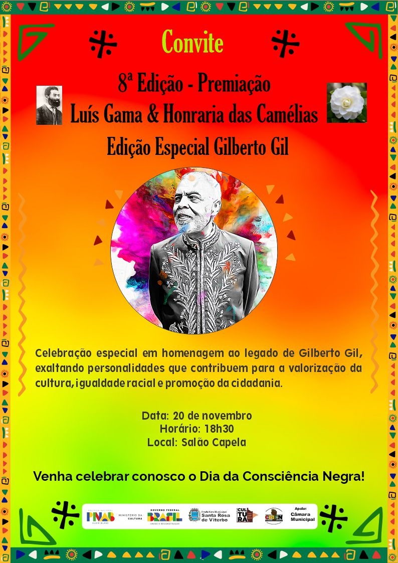 Convite Especial: 8ª Edição – Premiação Luís Gama & Honraria das Camélias – Edição Especial Gilberto Gil