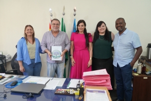 A Prefeitura de Santa Rosa de Viterbo recebeu oficialmente, nesta quinta-feira (6), o Plano Diretor de Restauração Ecológica (PDRE), elaborado pela Atena Serviços de Engenharia e Consultoria Ltda. O documento foi entregue no Gabinete pelas ambientalistas Leda Menezes, engenheira ambiental, e Paula Valéria, gestora ambiental, com a presença do prefeito Omar Nagib, do vice-prefeito Paulão Santos e da diretora de Meio Ambiente, Camila Fedel, responsável pela coordenação do processo de construção do plano.