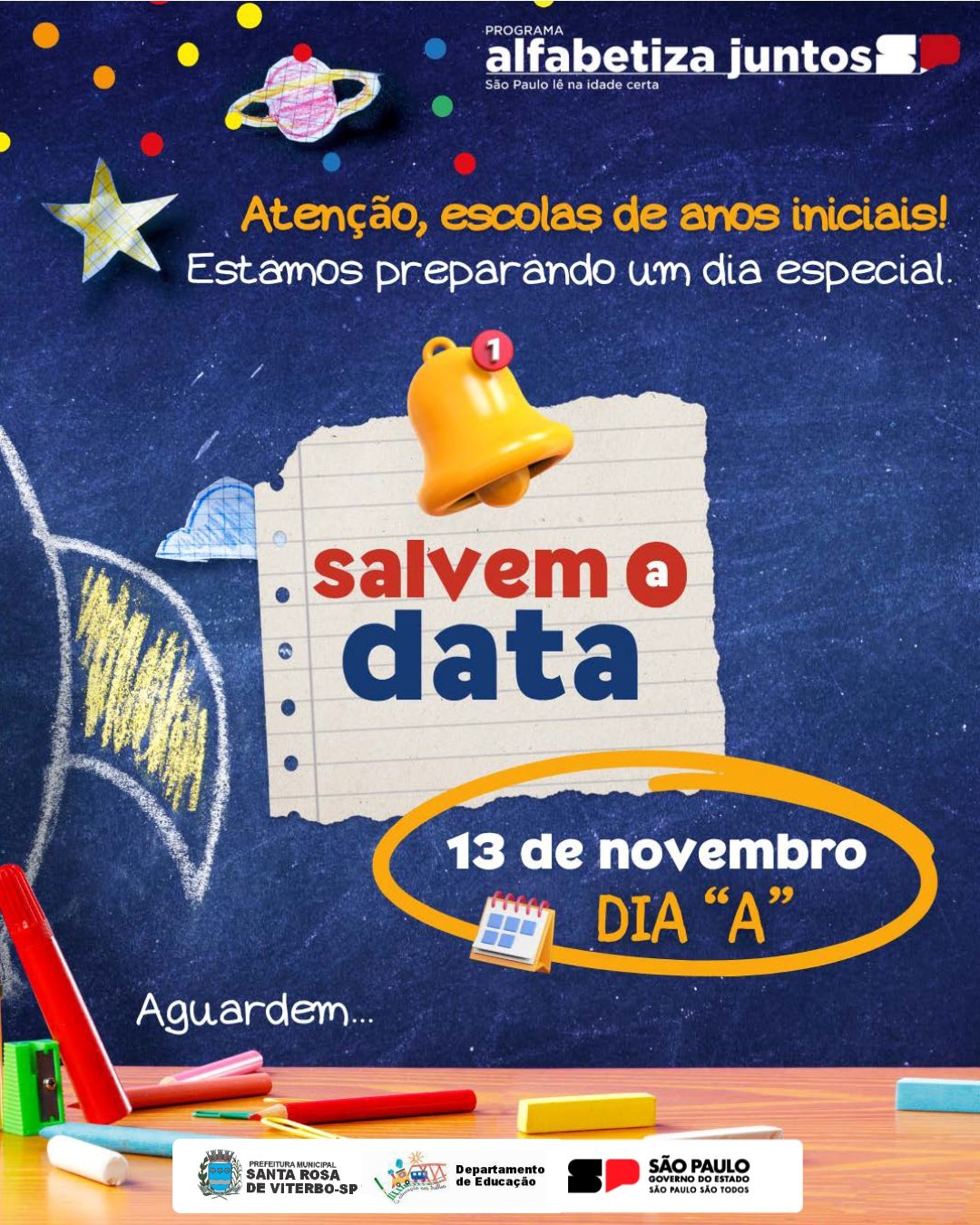 Nesta quinta-feira, 13 de novembro, a Rede Municipal de Ensino de Santa Rosa de Viterbo participa da Mobilização Estadual pela Alfabetização na Idade Certa: o Dia A da Alfabetização.