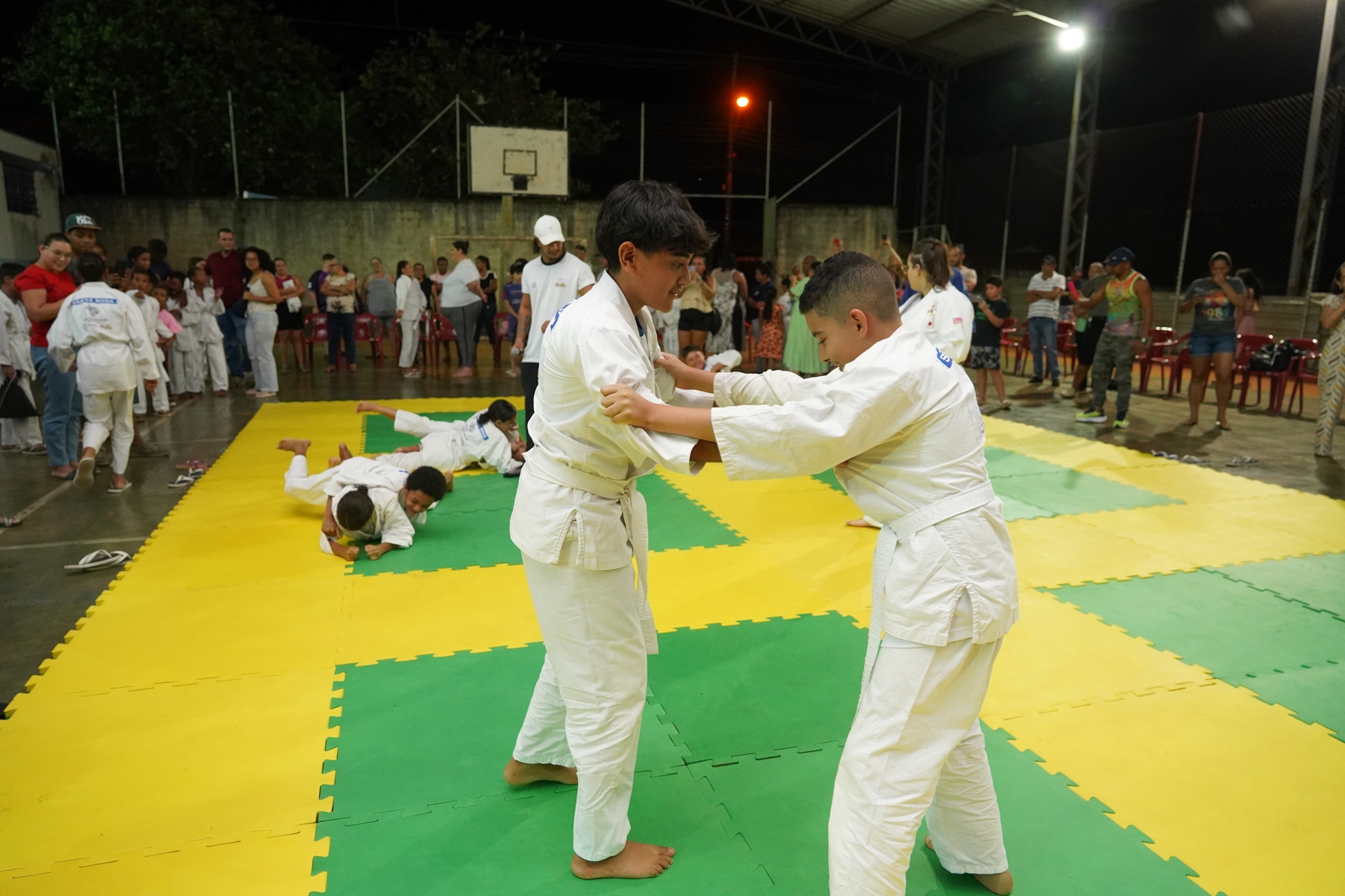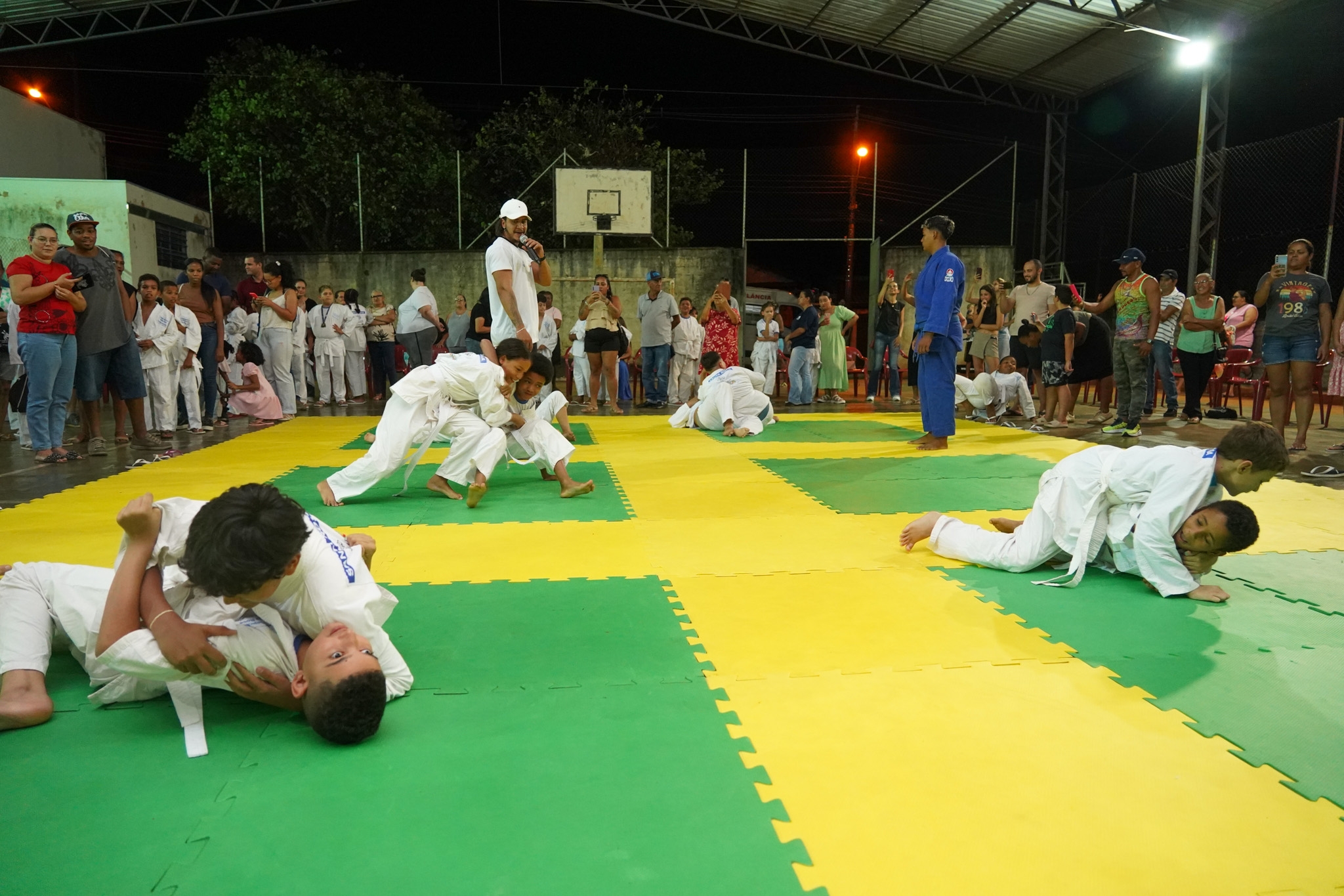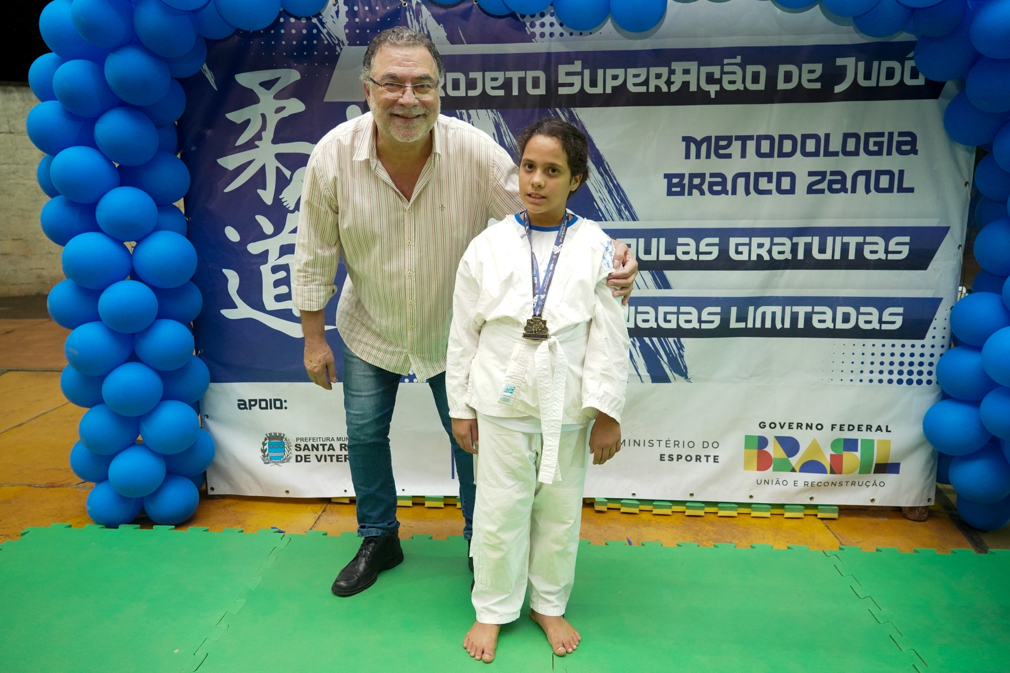 O 1º Festival de Judô do Projeto SuperAção reuniu os alunos do Programa Recriança, dos polos Tio Pica-Pau e João Candinho, na noite desta quarta-feira, 12 de novembro, na Escola Lourdes Pereira Massaro, em Santa Rosa de Viterbo. O evento, que contou com a presença de pais, familiares e professores do Recriança, além dos vereadores Marinho Titarelli, Cidinha Estevam, Chico Vacis e Luís dos Reis Augusto (Bode), bem como do chefe do Setor de Esportes, Rafael Rodriguez, do diretor de Educação, Marcos Ferri, e do prefeito Omar Nagib, foi marcado por um clima de integração, incentivo ao esporte e celebração do aprendizado, proporcionando momentos de confraternização e espírito esportivo entre os participantes.