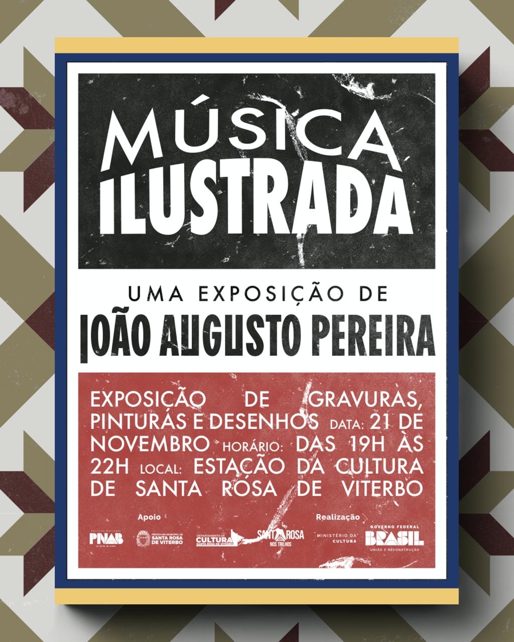 A Estação da Cultura de Santa Rosa de Viterbo recebe, no dia 21 de novembro, a exposição “Música Ilustrada”, do artista João Augusto Pereira. A mostra apresenta um conjunto de gravuras, pinturas e desenhos que exploram a relação entre a música e as artes visuais, revelando a sensibilidade do artista em traduzir sons em imagens.