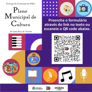 A Prefeitura Municipal de Santa Rosa de Viterbo, por meio do Departamento de Cultura, convida toda a população a participar da elaboração do Plano Municipal de Cultura.