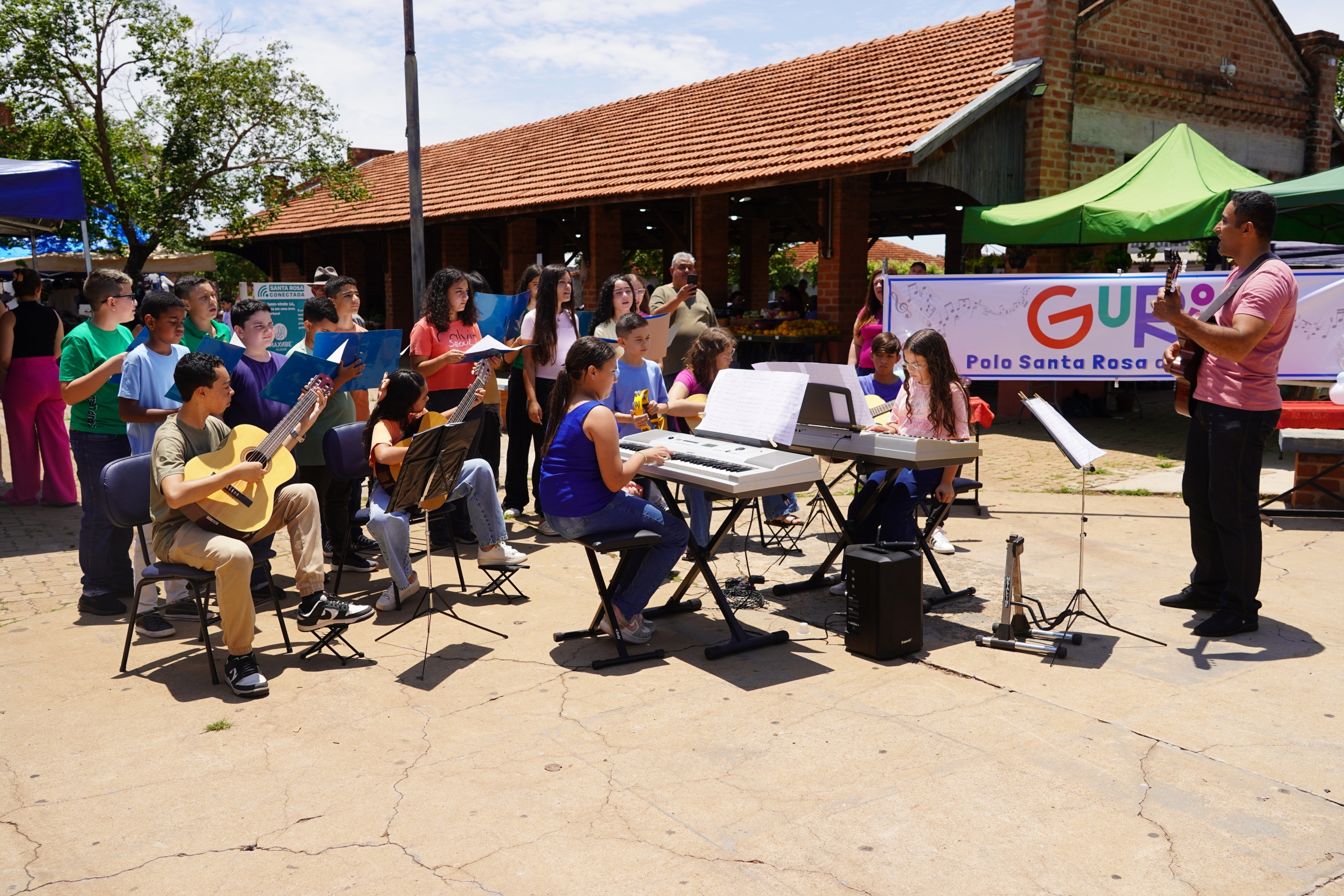 O Polo do Guri de Santa Rosa de Viterbo celebrou em grande estilo os 30 anos do programa com uma bela apresentação na Feira da Mogiana, realizada na manhã deste sábado (15). Como parte da mobilização estadual que reuniu simultaneamente 70 municípios, os alunos do coral emocionaram e surpreenderam quem estava na feira, enchendo o ambiente de música e encantamento ao interpretarem a canção “Sou GURI”, criada especialmente para marcar o aniversário de três décadas do projeto.