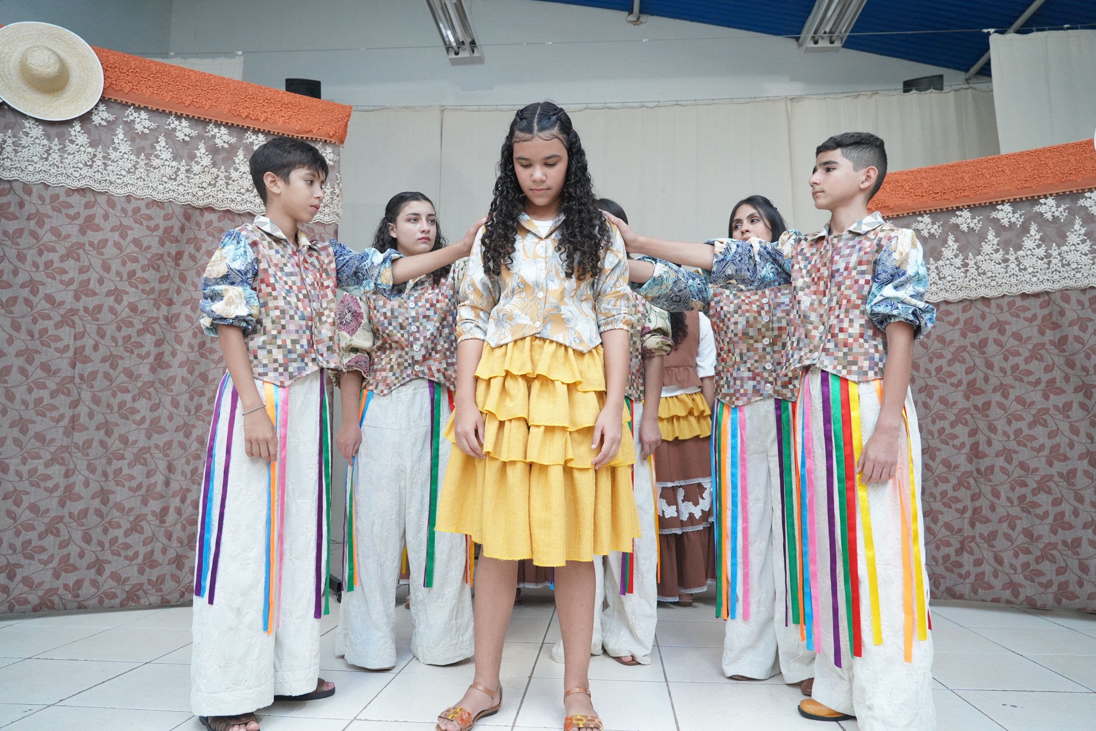 Com estética marcante e forte impacto emocional, Flor do Meu Sertão encerrou a sequência de três apresentações do Projeto Oficinantes em Santa Rosa de Viterbo, na noite deste sábado, 15 de novembro, diante de mais uma plateia cheia — reforçando o engajamento do público com a programação cultural. A peça narrou a história de cinco irmãs que enfrentam o amor, a ausência e o silêncio que se instala quando alguém partiu. No centro da trama esteve Tereza, a mais jovem, que vive à espera de quem deixou apenas promessas breves e ecos persistentes. Com diálogos sensíveis e cenas construídas com forte carga poética, o espetáculo conduziu o público por um sertão onde o tempo é árido, mas a esperança insiste em florescer.