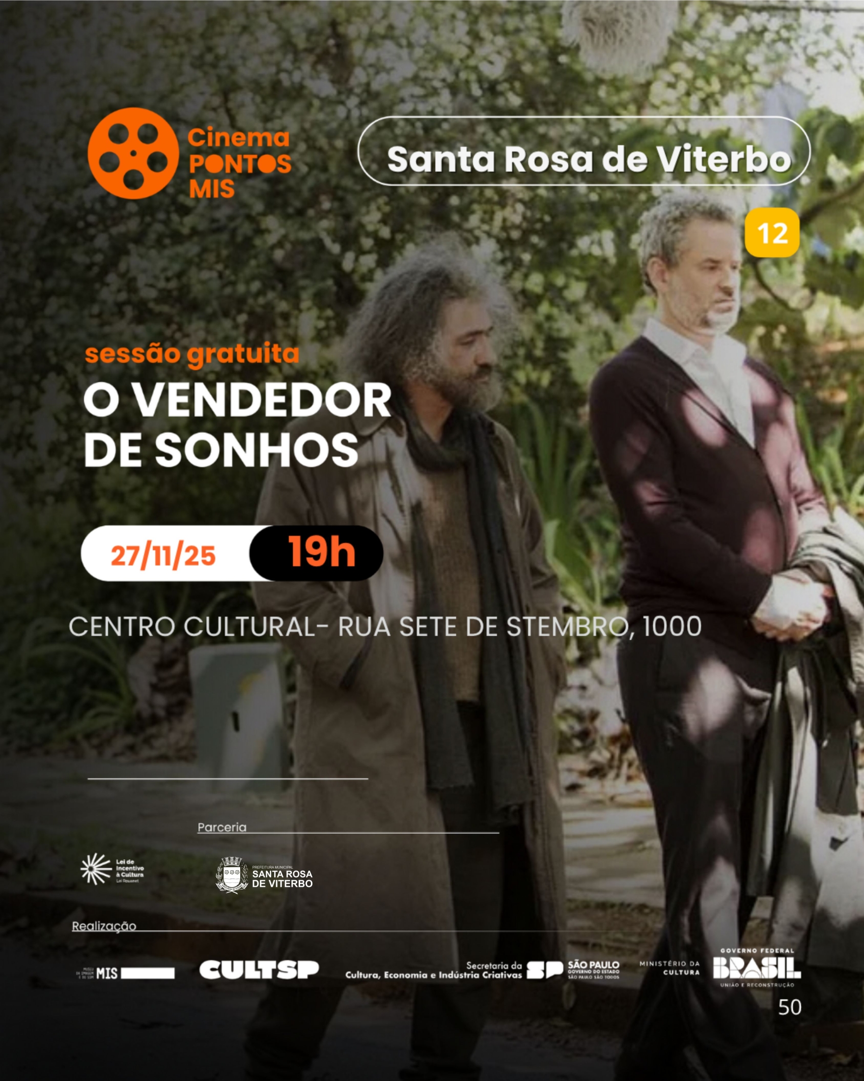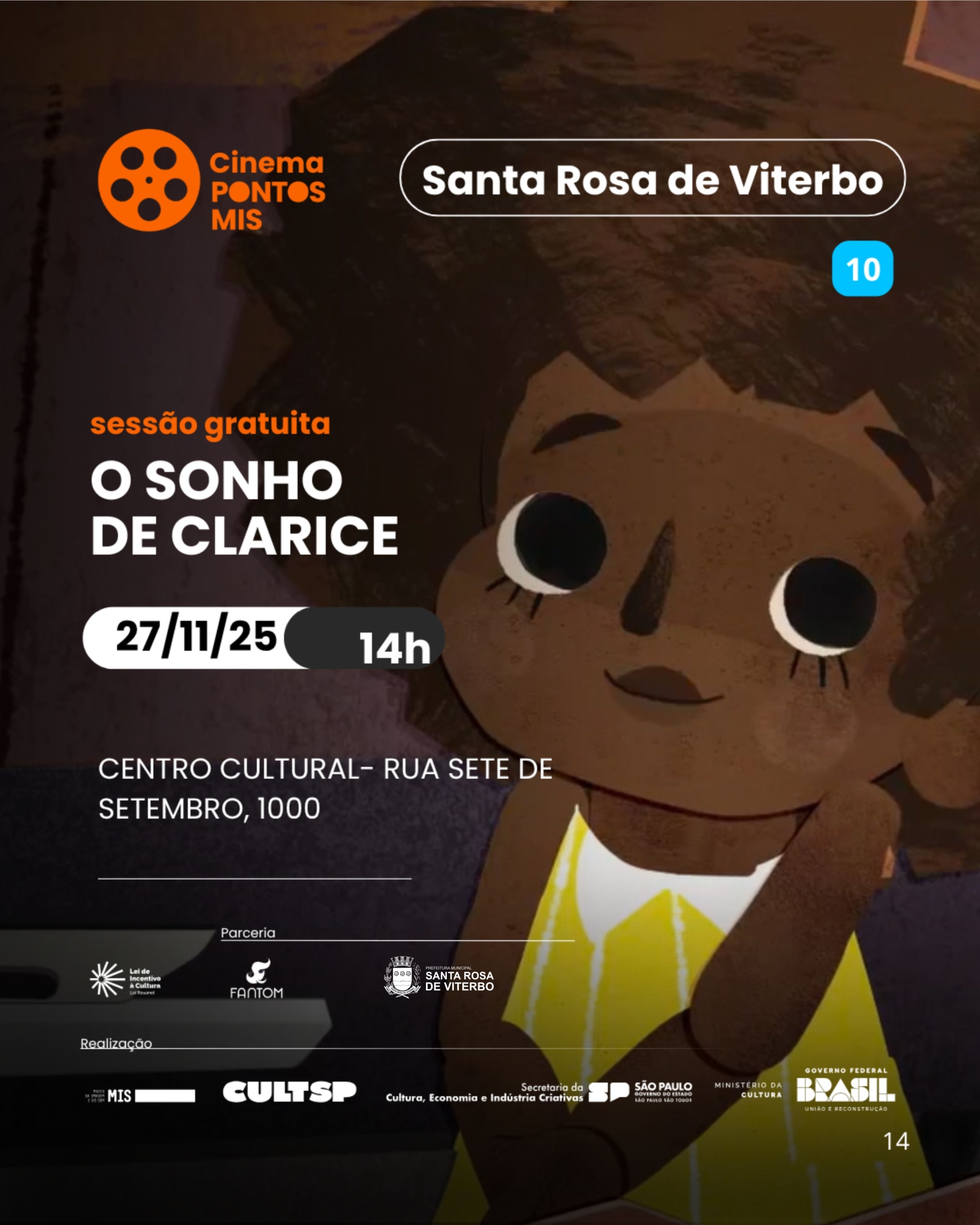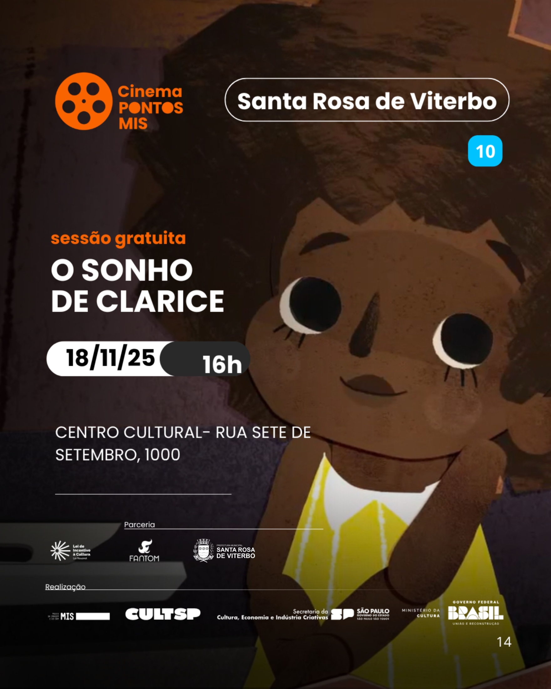 O Pontos MIS, a Fundação Cultural e o Departamento de Cultura apresentam a programação de filmes que serão exibidos no Centro Cultural ao longo do mês.