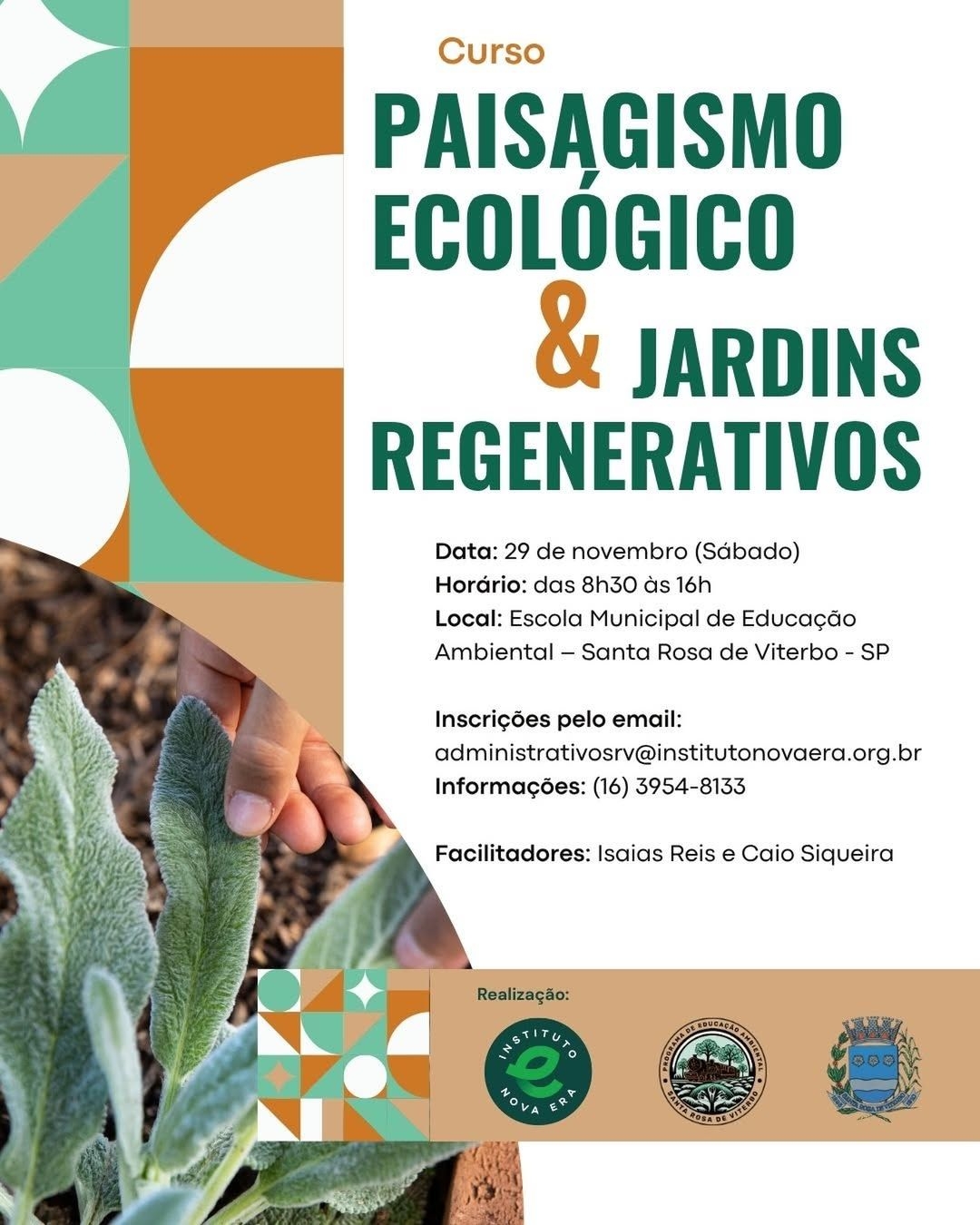O Programa de Educação Ambiental de Santa Rosa de Viterbo, uma parceria da Prefeitura Municipal com o Instituto Nova Era, convida para uma formação prática e inspiradora, alinhada com o futuro sustentável do nosso município!