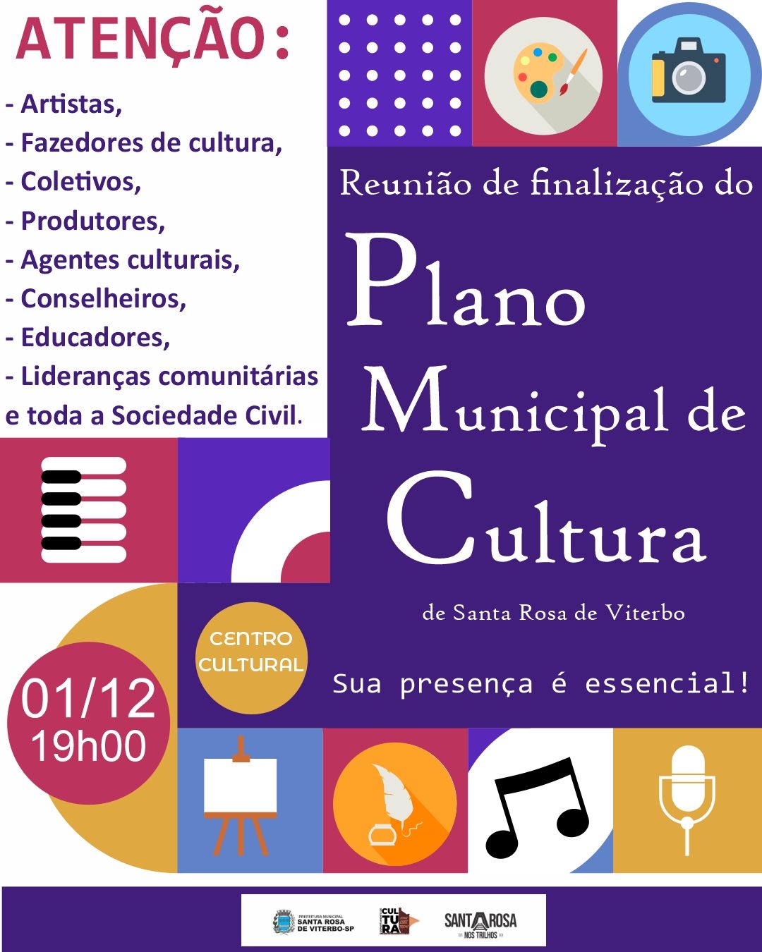 Convocação para reunião sobre o Plano Municipal de Cultura de Santa Rosa de Viterbo
