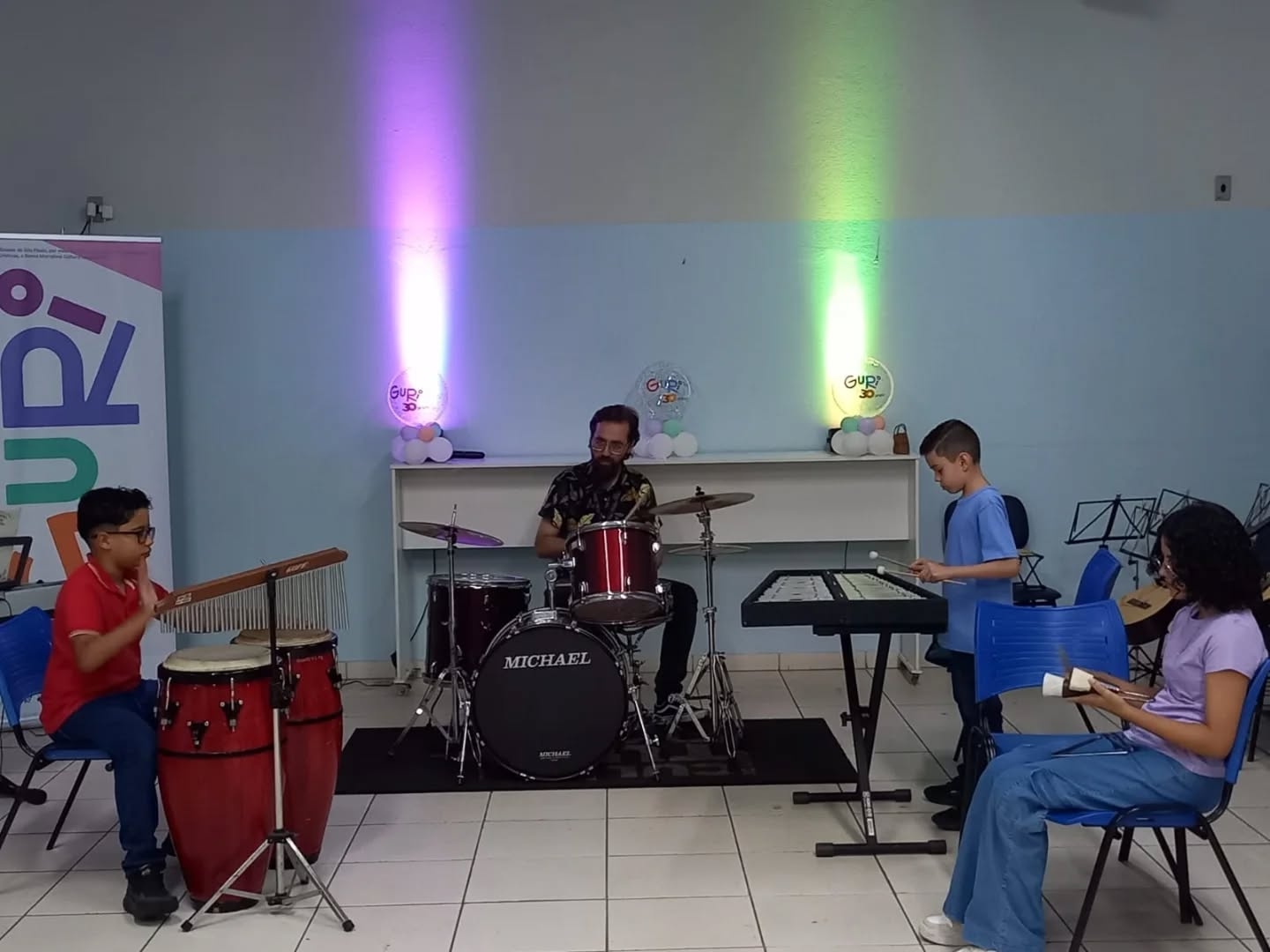 O Guri Santa Rosa de Viterbo realizou, nos dias 24 e 26 de novembro, apresentações que celebraram o encerramento do semestre dos alunos atendidos pelo Polo. As mostras reuniram estudantes de Iniciação Musical, Coral Sequenciais I, II e III, além das turmas de Violão, Teclado e Percussão, que encantaram o público em cada nota, acorde e canção entoada, demonstrando com sensibilidade o aprendizado e os avanços conquistados ao longo dos últimos meses.
