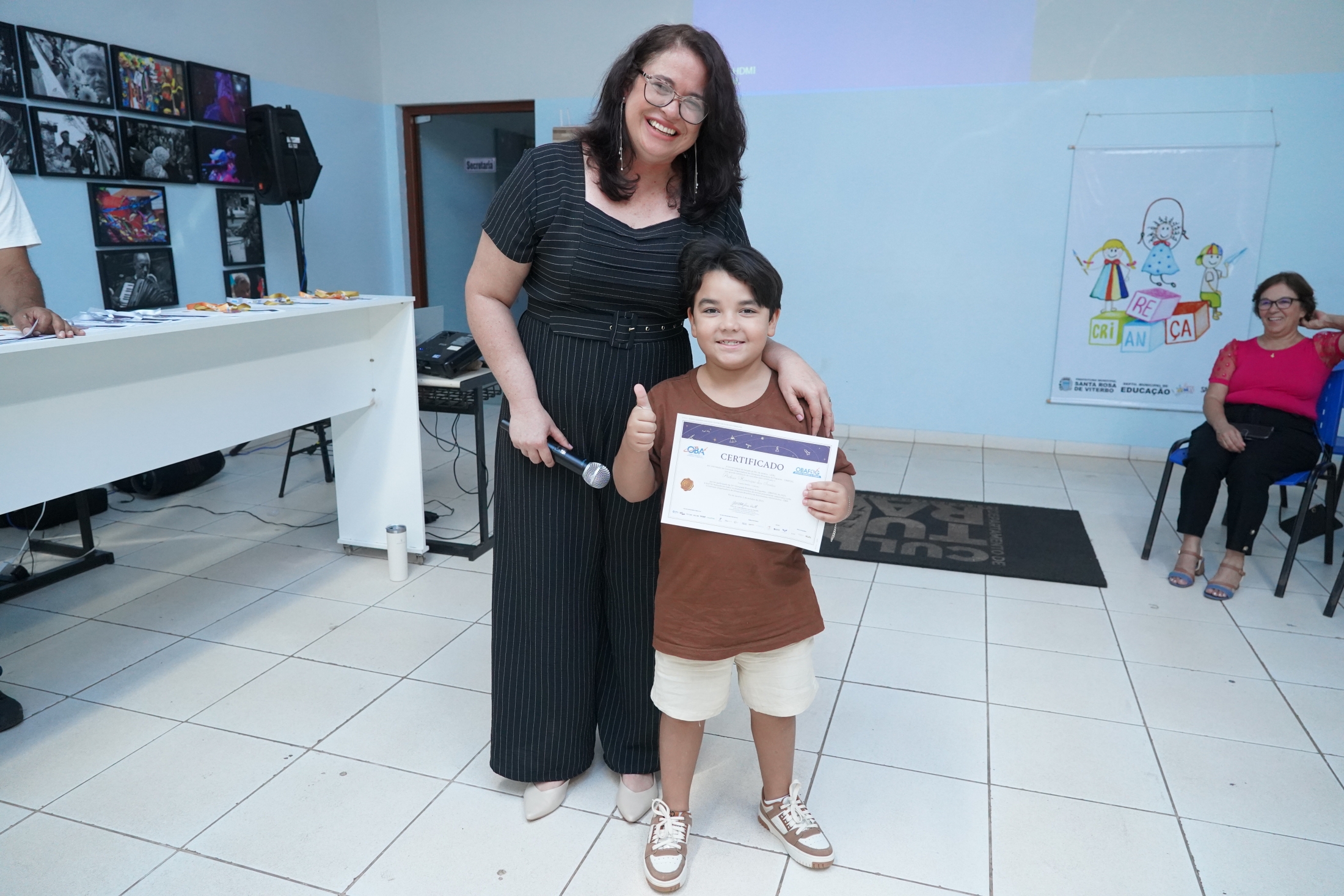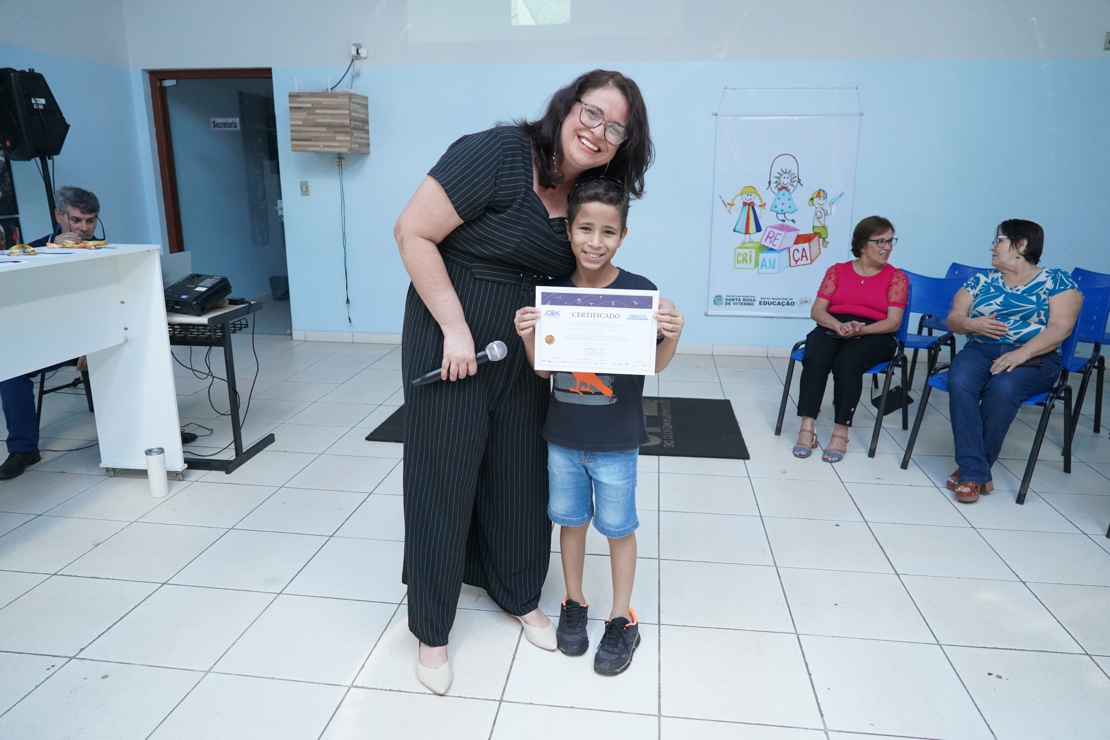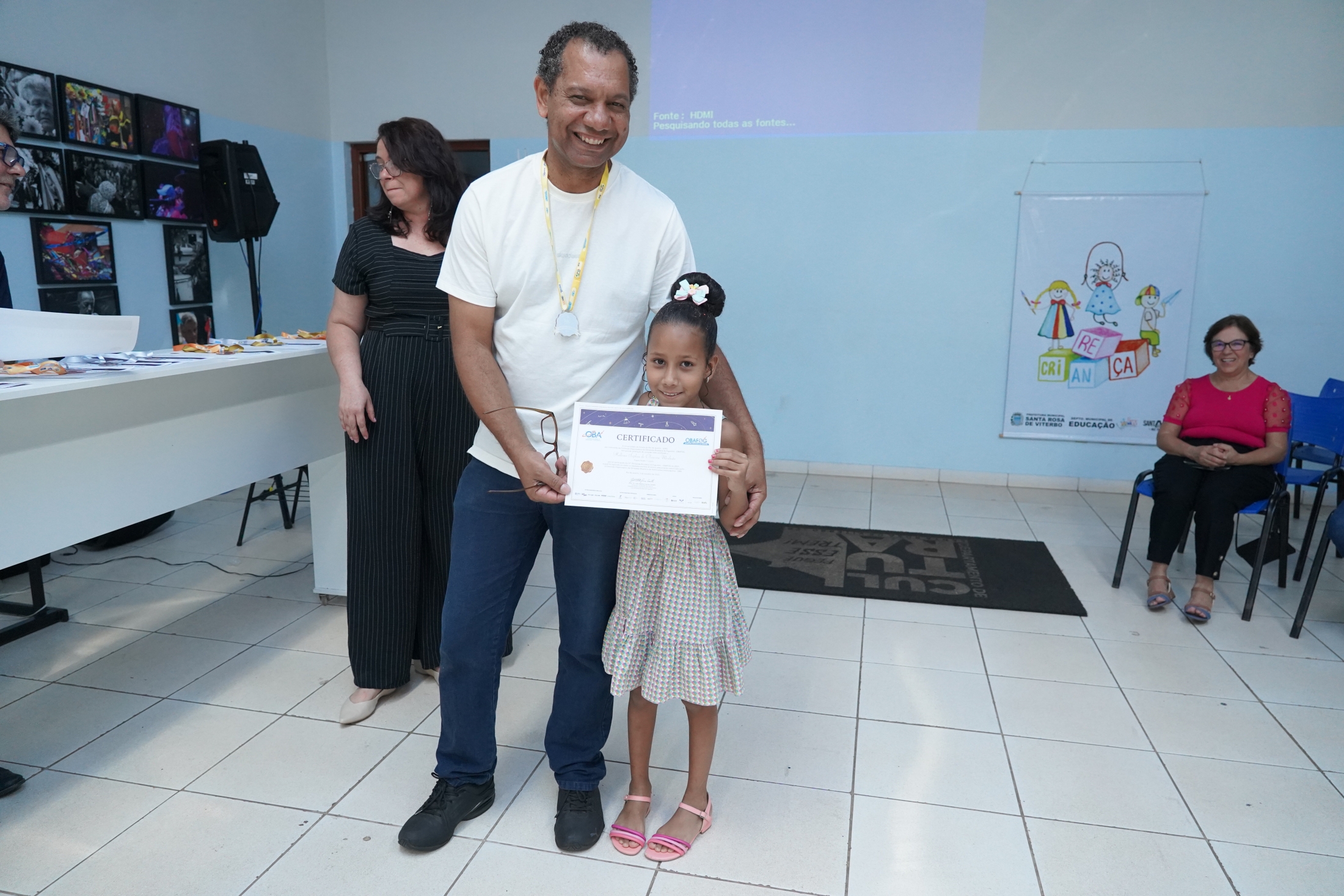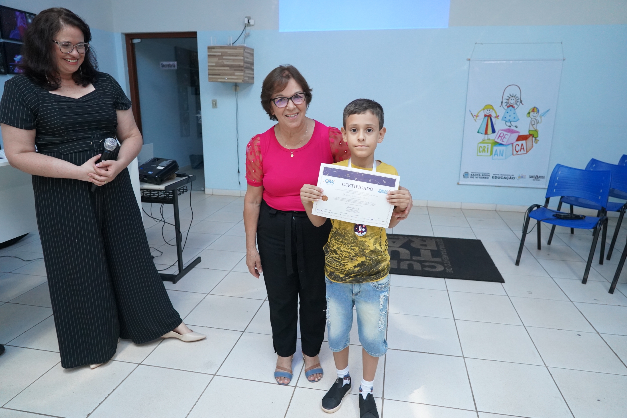 A cerimônia, que também certificou alunos pela participação e foi aberta às famílias e ao público, destacou o empenho dos participantes e o impacto positivo da iniciativa no aprendizado. Durante o evento, o vice-prefeito Paulão Santos parabenizou todos os envolvidos: “Quero parabenizar os professores da equipe desse projeto e destacar o quanto é importante as pessoas estarem envolvidas nos projetos escolares e nos projetos do Recriança. Parabenizo também as crianças e as famílias que permitem a participação dos filhos nesses projetos que enaltecem e transformam. Crianças envolvidas em projetos do bem se tornam adultos do bem. Parabéns a todos.”