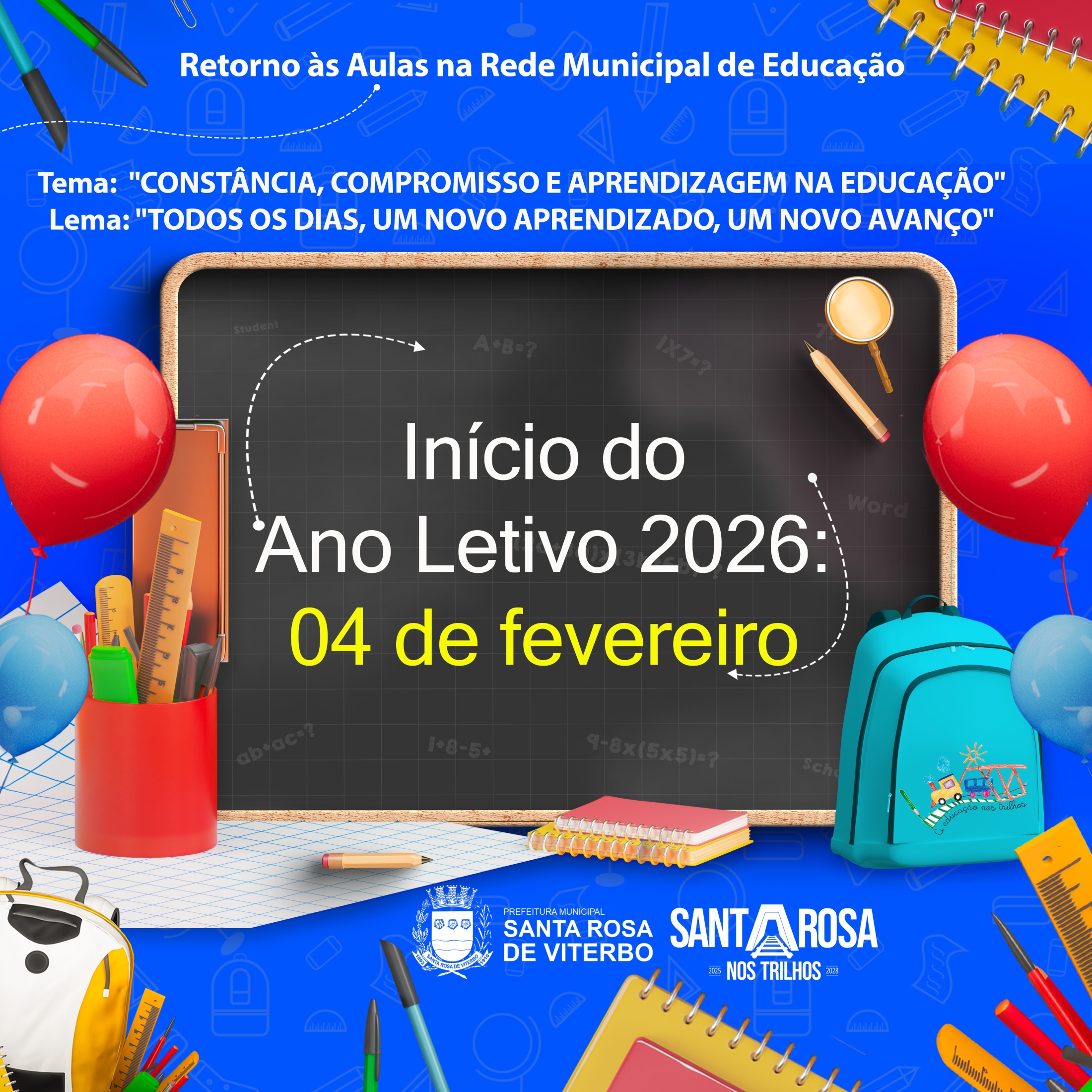O ano letivo de 2026 na Rede Municipal de Educação terá início no dia 4 de fevereiro, marcando o começo de uma nova etapa de aprendizado, convivência e descobertas para nossos alunos.