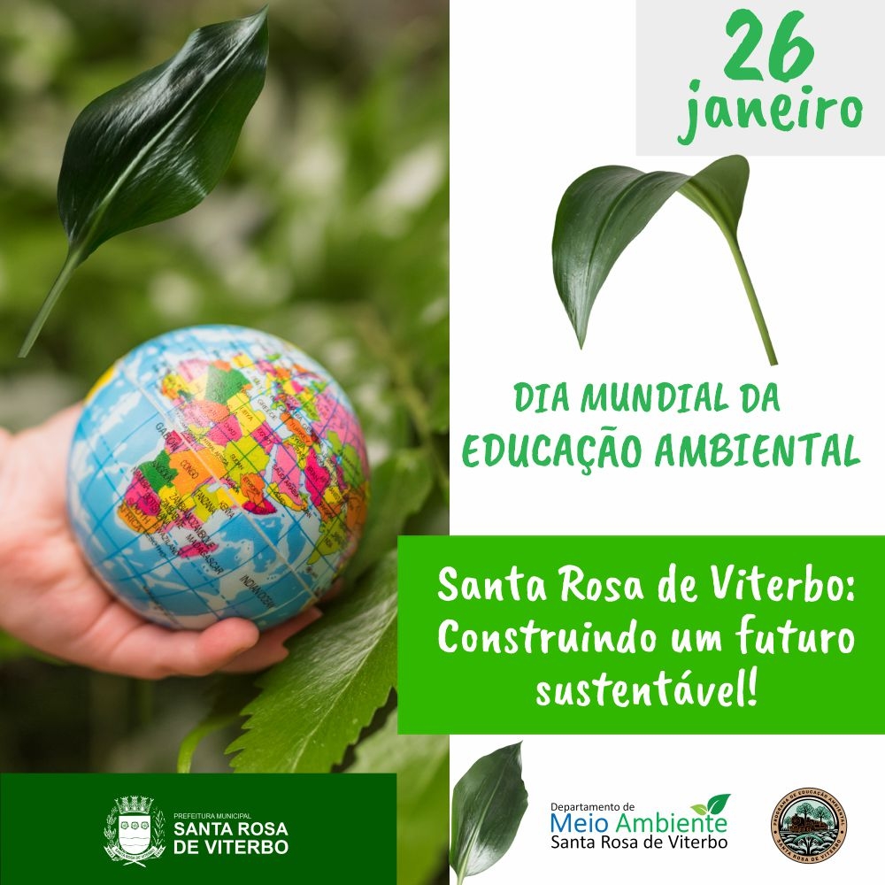 Hoje, a Prefeitura de Santa Rosa de Viterbo celebra o Dia Mundial da Educação Ambiental, reforçando o compromisso com a formação de uma cidade cada vez mais consciente, sustentável e responsável com o meio ambiente.
