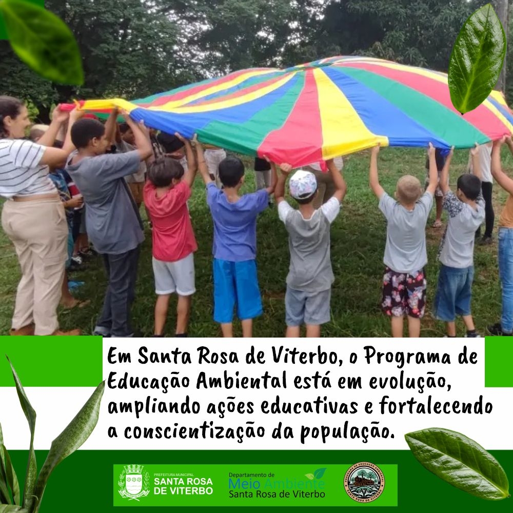 O Programa de Educação Ambiental do município está em constante evolução, ampliando ações, projetos e parcerias que promovem a conscientização da população, desde as crianças nas escolas até toda a comunidade. Por meio de atividades educativas, orientações práticas e envolvimento coletivo, Santa Rosa de Viterbo avança na construção de uma cultura de respeito à natureza e ao uso responsável dos recursos naturais.