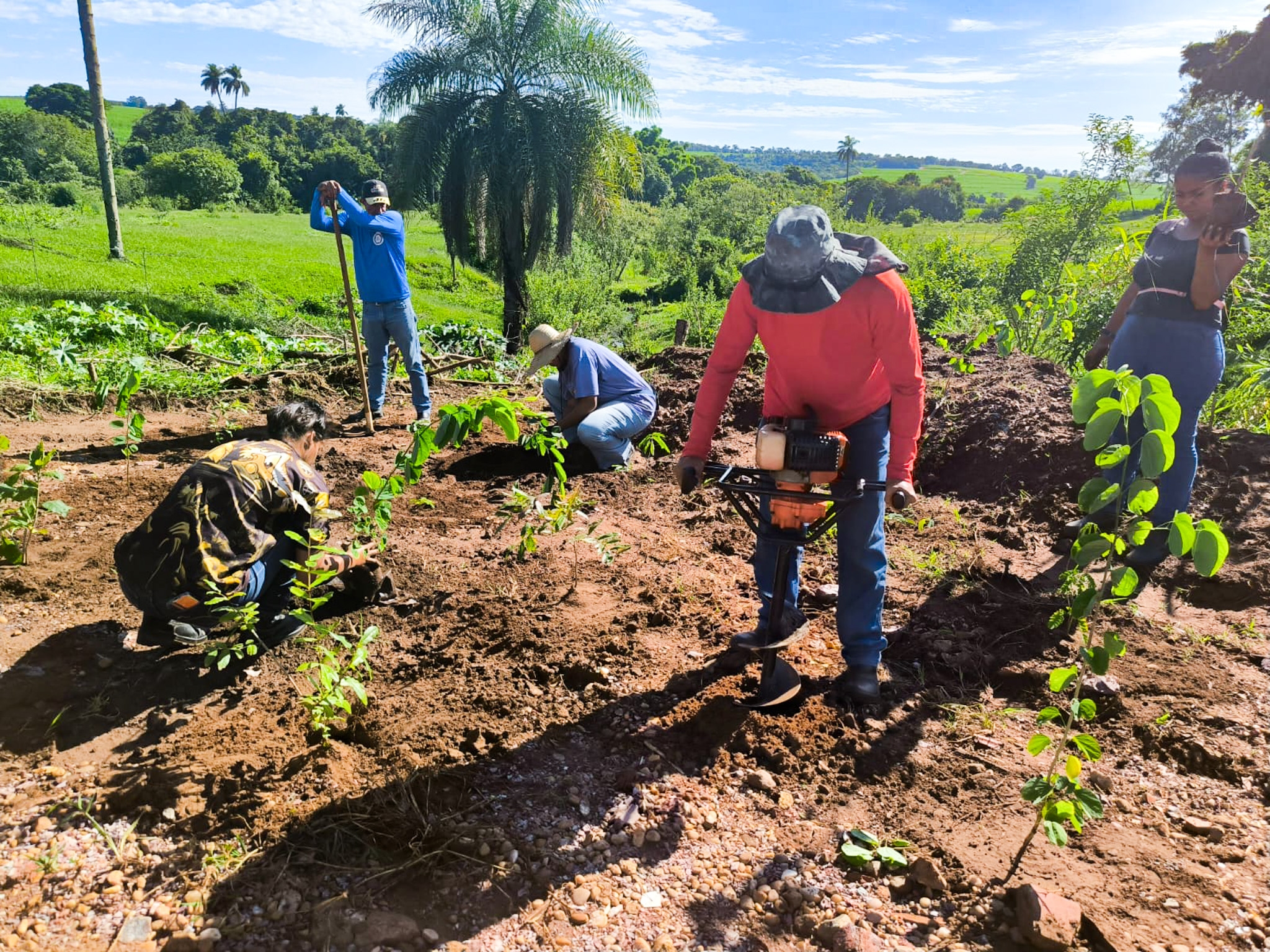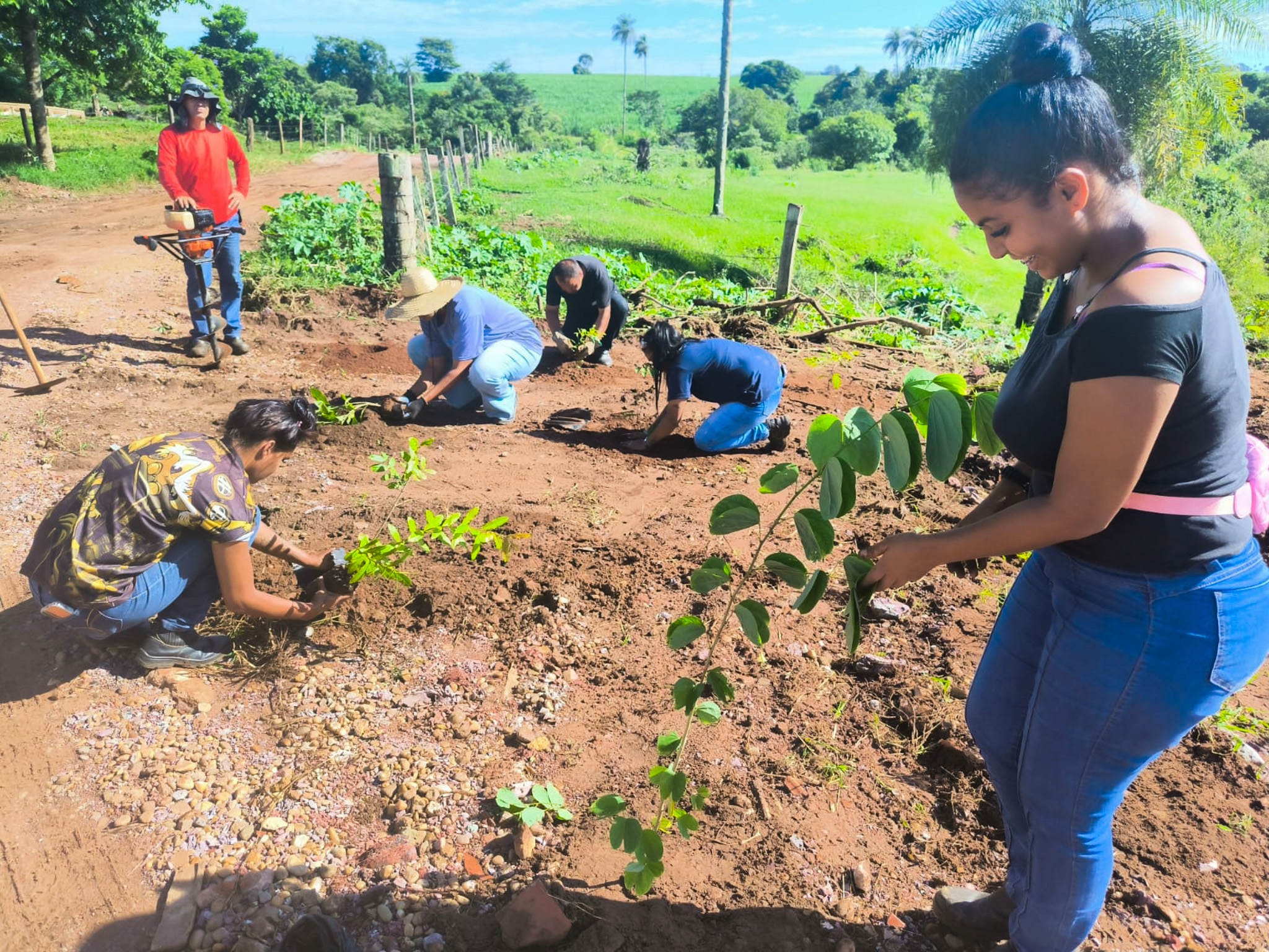 O Departamento de Meio Ambiente, por meio da diretora Camila Fedel, coordenou o plantio de mudas realizado às margens do Córrego Bonsucesso, com o apoio da Frente de Trabalho, como parte do cumprimento de um Termo de Compromisso de Recuperação Ambiental (TCRA) da Cetesb, firmado há muitos anos.