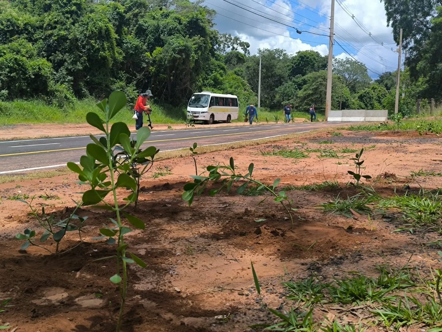O Departamento de Meio Ambiente está realizando o plantio de árvores frutíferas e plantas ornamentais ao longo da ciclovia e da trilha de caminhada do Tirisco, na estrada de Nhumirim.