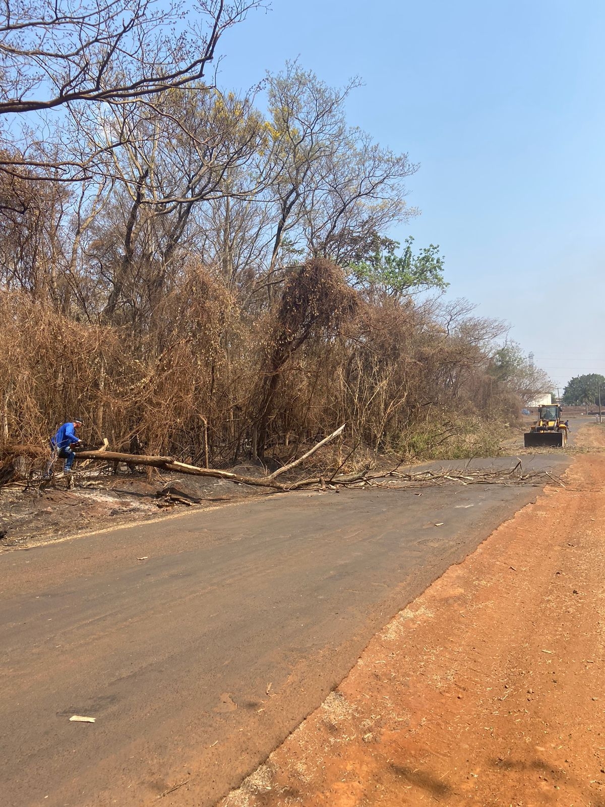 A Prefeitura Municipal de Santa Rosa de Viterbo informa que a vicinal Antônio Caetano da Silva, saída da cidade pelo Saracura, continua interditada. O departamento de Obra e Meio Ambiente realiza no local a poda das árvores atingidas pelo incêndio na última semana e que apresentavam riscos de desabarem.