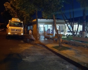 Os trabalhos de roçada e poda, limpeza de vias públicas, calçadas, praças e ciclovias continuam, bem como as atividades de higienização e aplicação do cloro em água, para a realização de tal procedimento de limpeza nos pontos de maior acesso populacional.