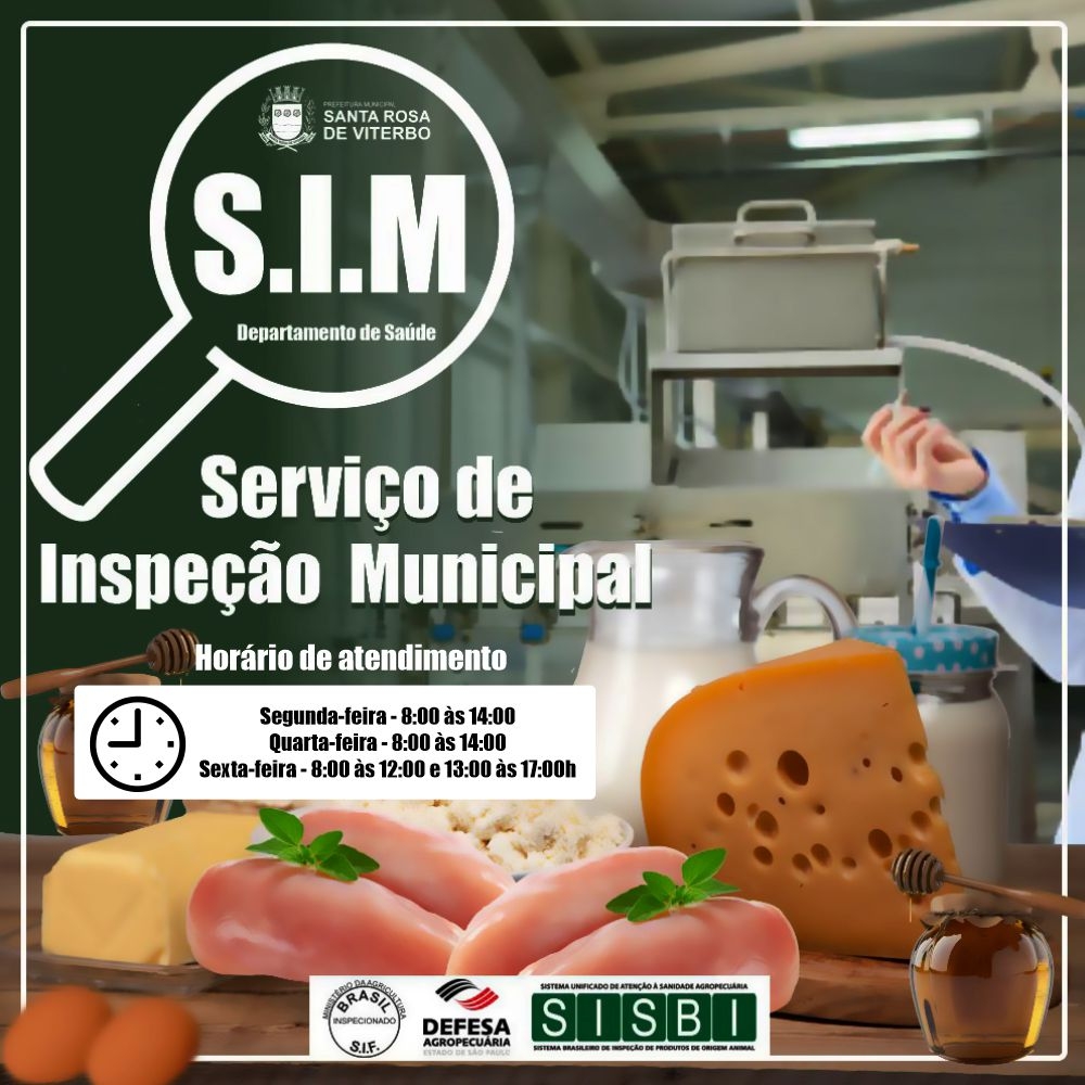 O S.I.M é o órgão que garante a qualidade e a segurança dos alimentos de origem animal consumidos em nosso município, como carnes, ovos, queijos e mel. Por meio da inspeção e orientação aos produtores locais, o serviço assegura o cumprimento dos padrões de higiene e sanidade, protegendo a saúde da população