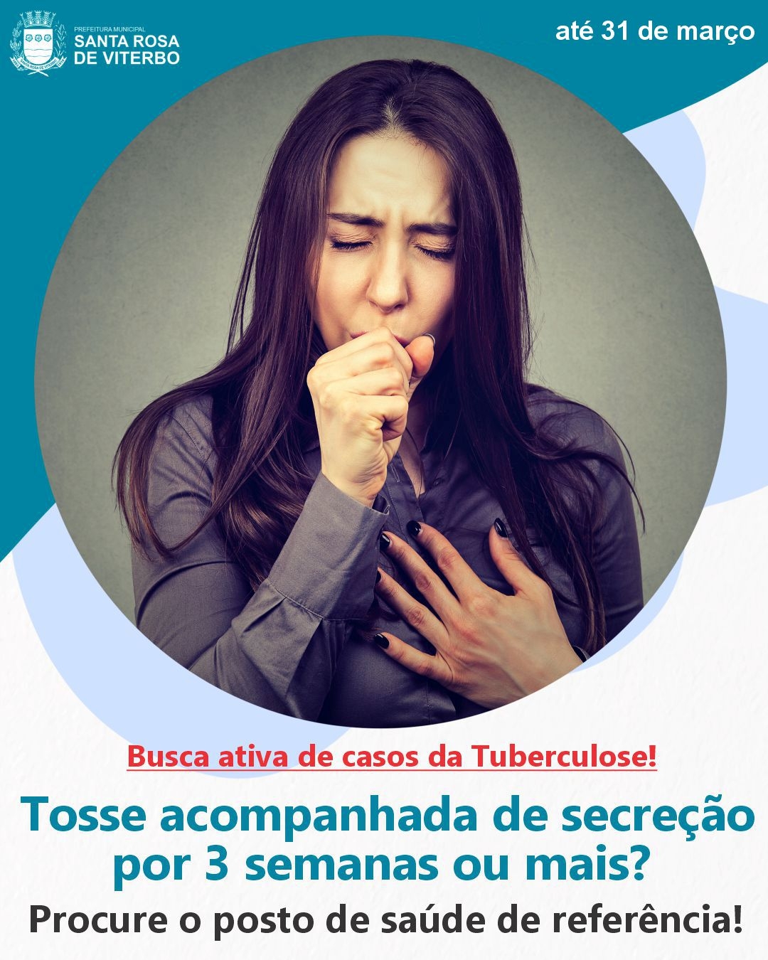 No período de 10 a 31 de março, o município realiza a Busca Ativa de Sintomáticos Respiratórios para testagem de tuberculose.