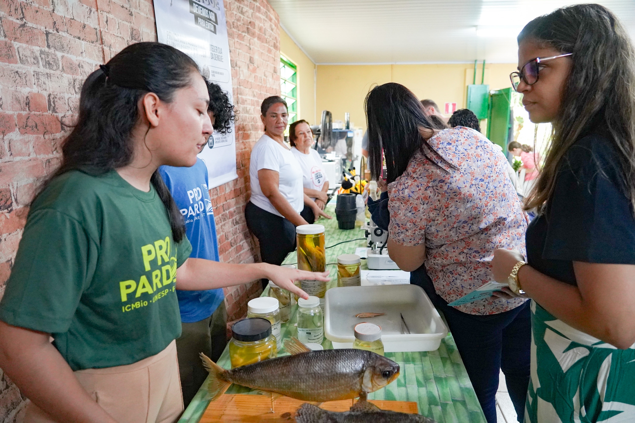 Em meio às atividades, a equipe do projeto Pró-Pardo, do CEPTA/ICMBio, trouxe à tona histórias que vivem sob a superfície das águas do Rio Pardo. Falaram das espécies nativas, das ameaças silenciosas causadas por espécies exóticas e das delicadas relações que mantêm o equilíbrio dos ecossistemas. Entre exemplos e explicações, revelaram como cada peixe, cada hábito alimentar e cada detalhe da vida aquática compõem um sistema que depende de cuidado constante.
