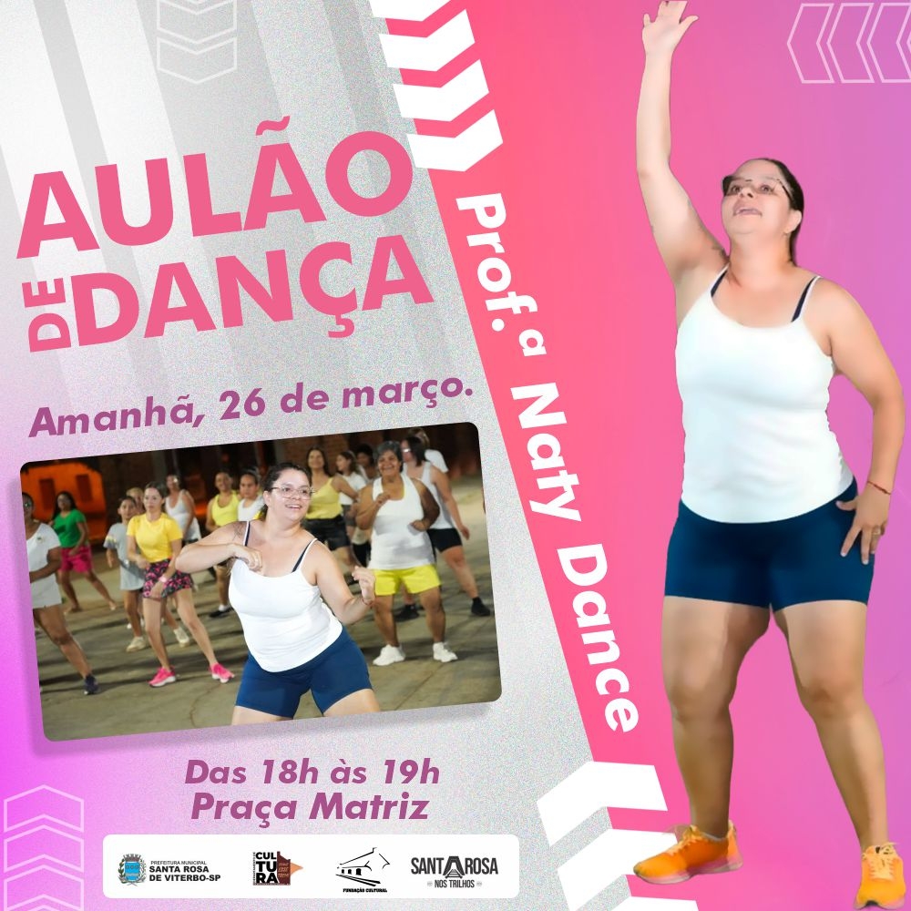Que tal cuidar da saúde e ainda se divertir muito? Amanhã, 26 de março, tem aulão de dança com a professora Naty Dance na Praça Matriz! (em caso de chuva, a atividade não será realizada).