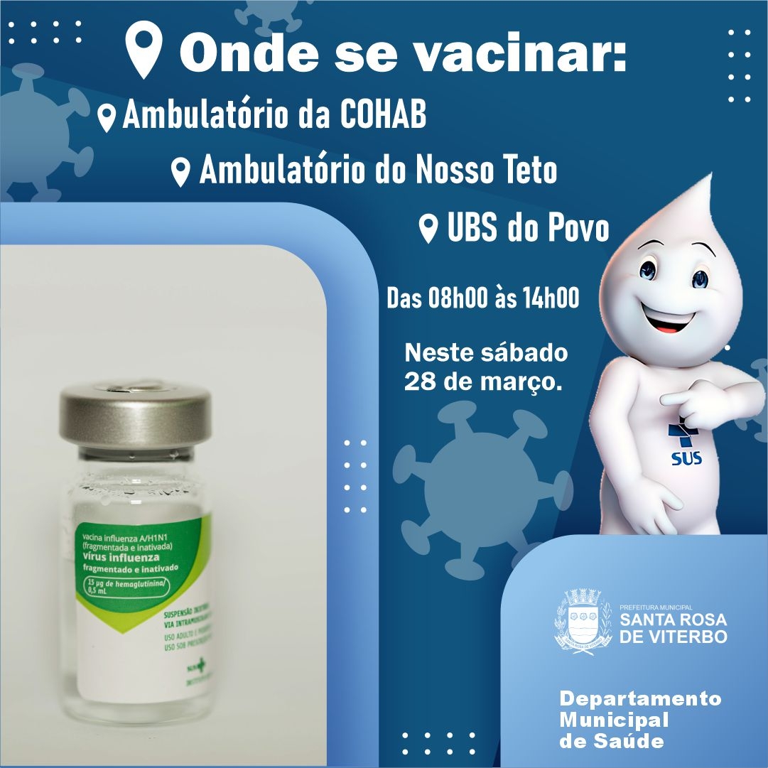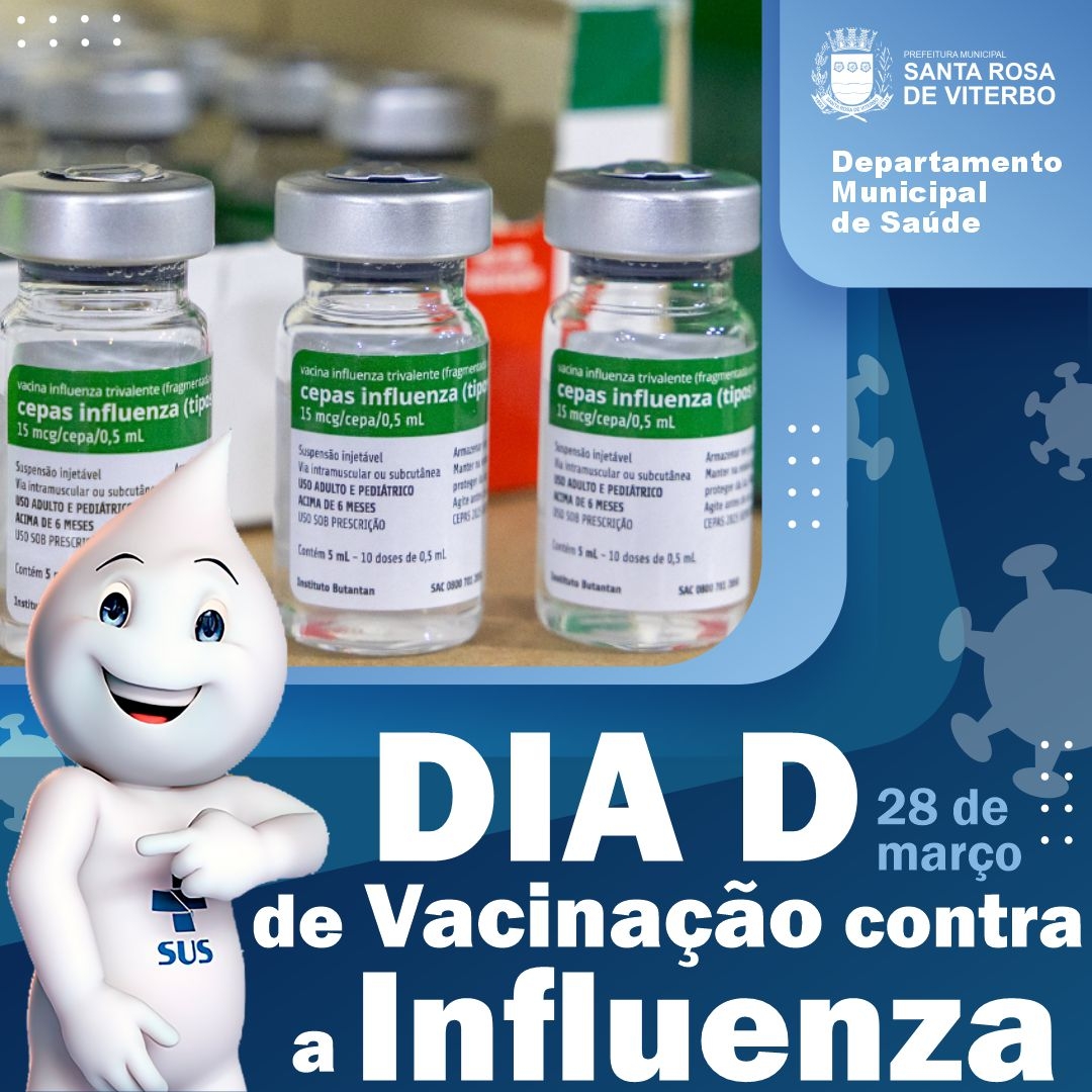 Neste sábado, 28 de março, acontece o Dia D da vacinação contra a Influenza 2026, com atendimento especial das 08h às 14h. É a oportunidade ideal para garantir sua imunização e cuidar da saúde.