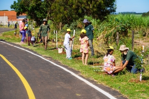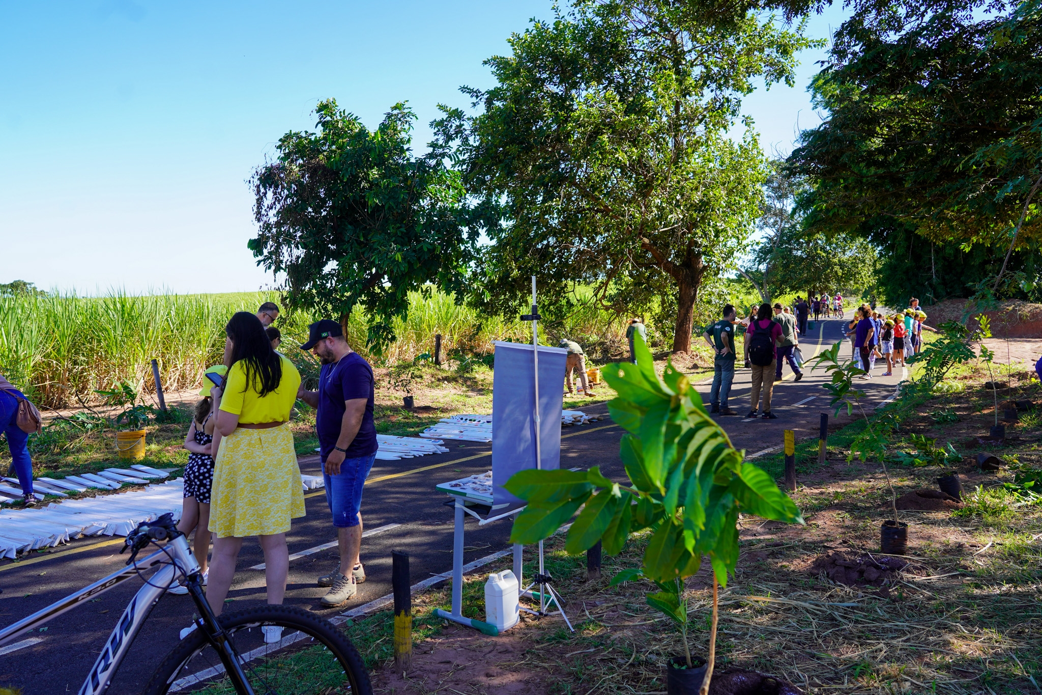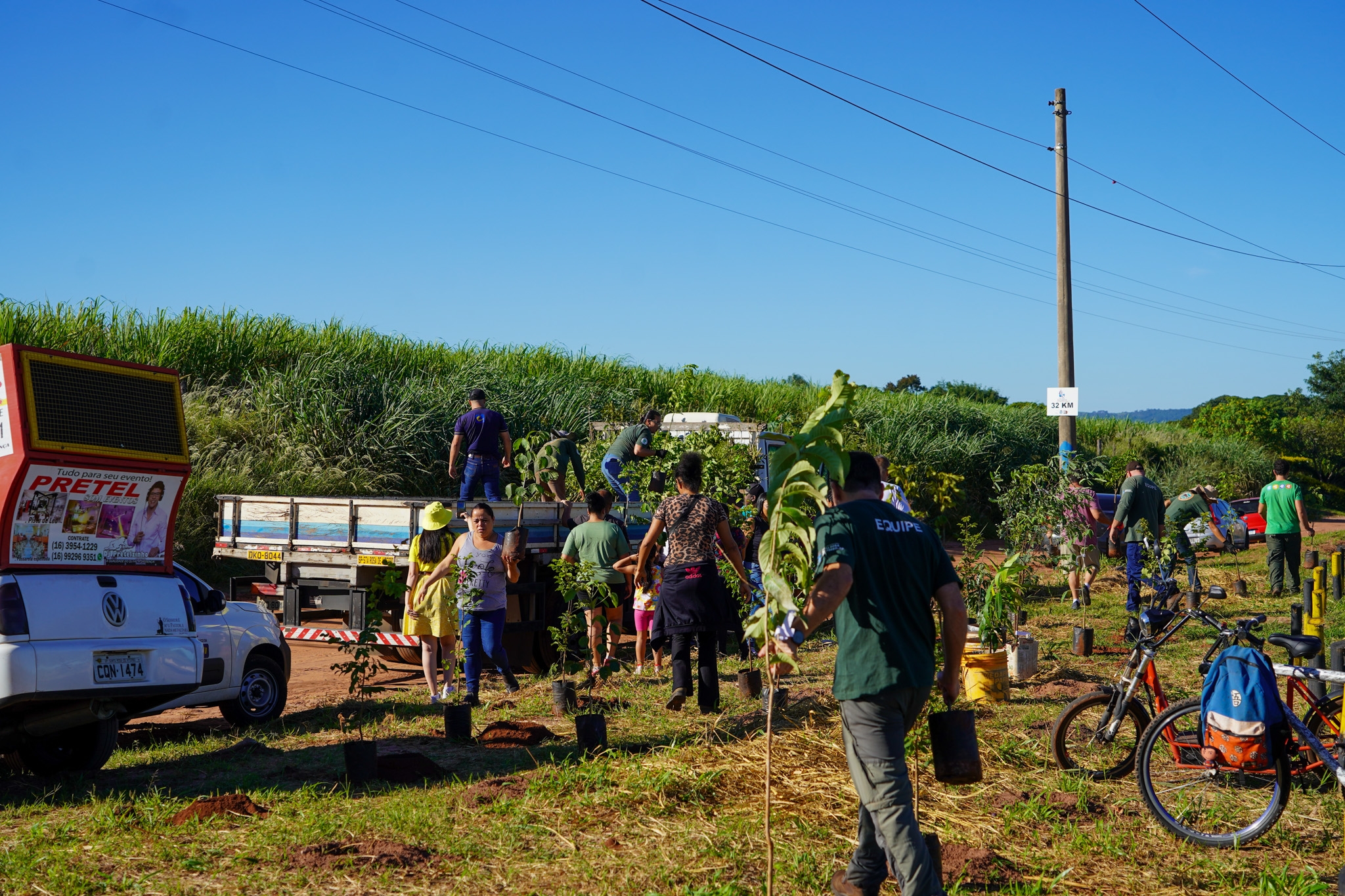 A manhã deste domingo (29) ganhou novos tons de verde na Ciclovia e Trilha de Caminhada do Tirisco. Em mais uma etapa do reflorestamento da área, a Prefeitura, por meio do Departamento de Meio Ambiente, promoveu o plantio de 360 mudas de árvores — entre espécies nativas, do cerrado e frutíferas — em uma ação que uniu alunos do programa Recriança, moradores e parceiros.