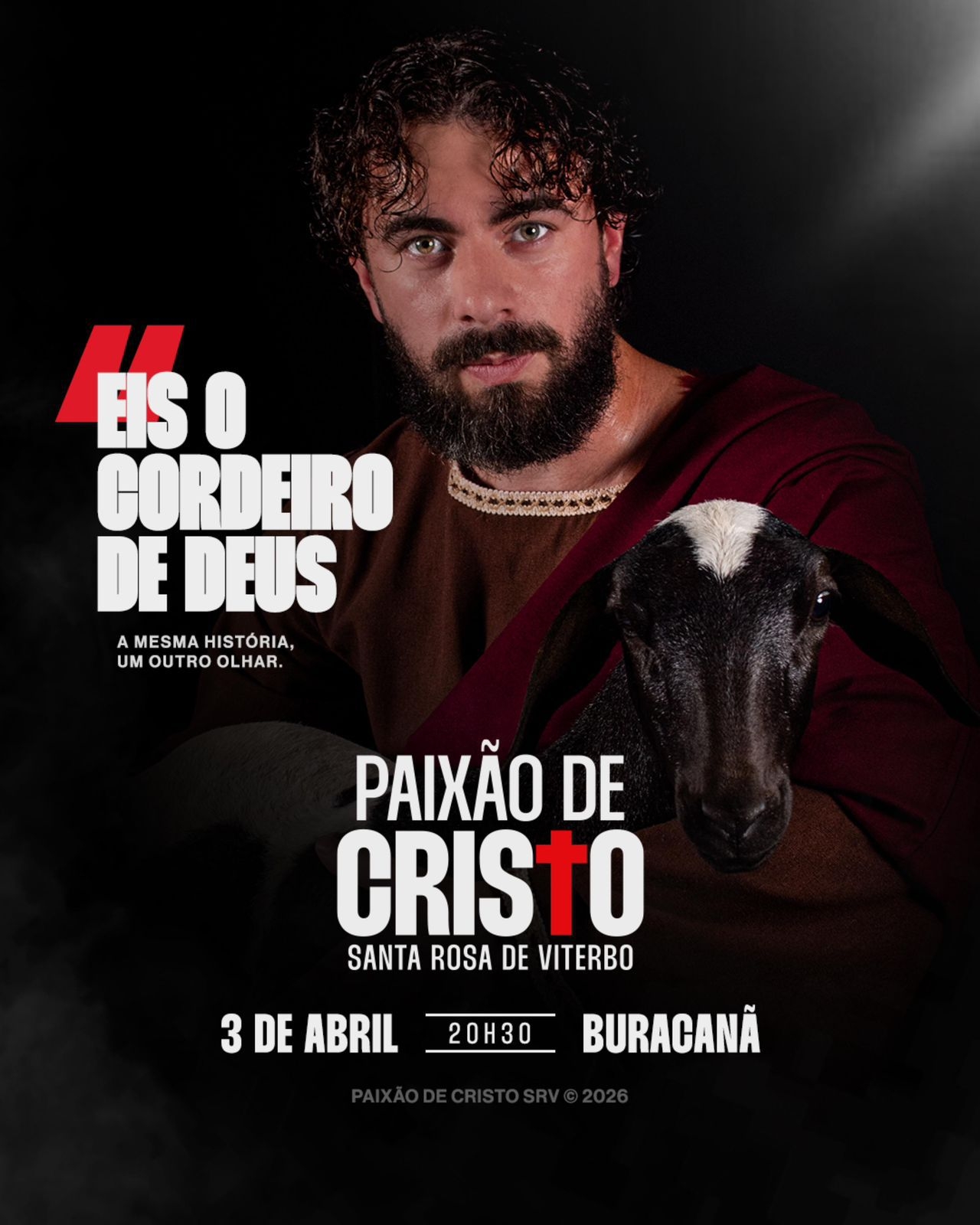 A tradicional encenação da Paixão de Cristo de Santa Rosa de Viterbo promete emocionar o público em 2026 com uma proposta mais profunda, simbólica e inovadora. Com o tema “Eis o Cordeiro de Deus”, o espetáculo convida a comunidade a refletir sobre o sacrifício redentor de Jesus, conectando o Novo Testamento à profecia do Vale dos Ossos Secos, do profeta Ezequiel.